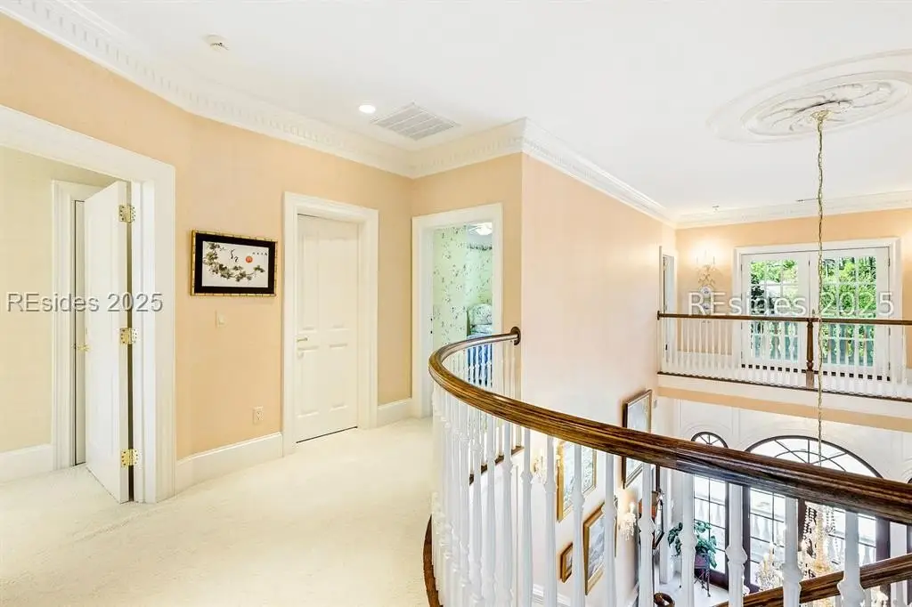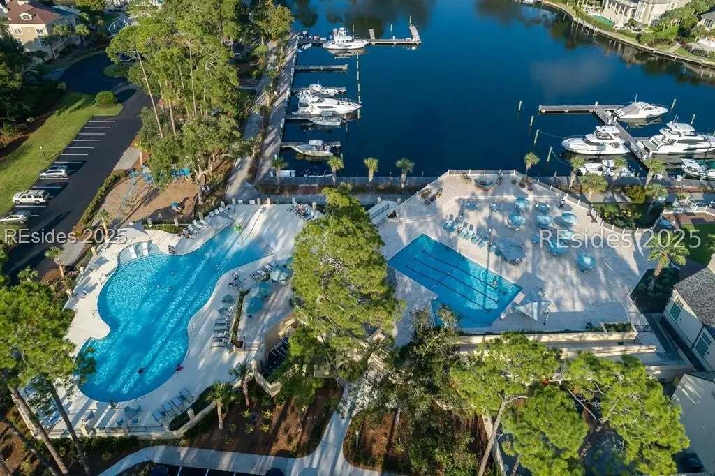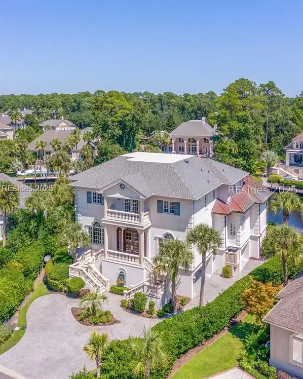 This extraordinary Wexford residence combines timeless craftsmanship, elegant design, and unmatched harbour views in one of Hilton Head's most prestigious private communities, all with your own private 70' boat dock! Built of concrete and steel, the home showcases exceptional construction quality and refined details throughout. A grand foyer with a floating staircase sets the tone, leading to formal living and dining rooms with intricate millwork, arched entries, and custom moldings. A private office/parlor offers a quiet retreat, while a wet bar with wine refrigeration enhances the homes entertaining appeal. Panoramic harbour views flood the open kitchen, family room, and breakfast area with natural light, making the space feel as if you are suspended above the water. Outdoor living is equally impressive, featuring a raised infinity-edge pool set against the dramatic harbour backdrop. On the main level, the spacious primary suite features a sitting area, expansive bath, and large closet, creating a private sanctuary. Upstairs, two versatile multipurpose rooms connect seamlessly, one with a bar with a beverage refrigerator and an icemaker serving both spaces. From here, step onto the upper harbour front deck to enjoy stunning views. Three ensuite bedrooms complete the upper level, one with its own deck access. Additional highlights include a cedar closet, a 3-stop elevator, and an expansive finished basement with space for 4 cars, a golf cart, workshop, and generous storage. As a Wexford resident, you'll enjoy premier amenities including a private marina, championship golf, tennis and pickleball courts, croquet, clubhouse dining, a resort-style pool complex, and a vibrant year-round social calendar. Exciting community improvements are also underway: a newly expanded clubhouse and a brand-new Harbour Center are scheduled for completion in April 2026. This is more than a home, it's an opportunity to embrace the elevated lifestyle that makes Wexford one of Hilton Head's most distinguished communities.