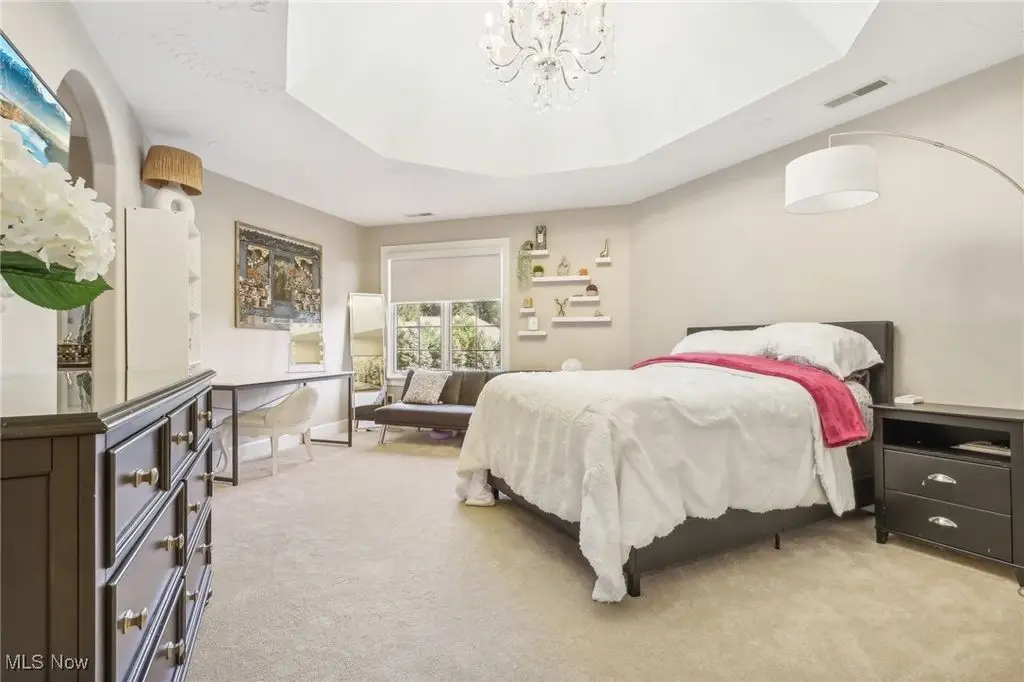 Nestled within a serene landscape, this custom-built home exudes elegance through meticulous craftsmanship & exquisite details. Upon entering you're greeted by a tremendous sweeping staircase, intricately designed woodwork, trim & molding that reflect the highest standards of artistry, spanning an impressive 7900+ sq.ft. Large pond is a picturesque centerpiece, highlighted by a soaring fountain, meandering walking path, sandy beach & charming she shed. These features transform the outdoors into a tranquil oasis. providing integration of indoor & outdoor living, dining & entertaining. Kitchen is chef's paradise, with two-tiered island, breakfast bar, high end appliances, & custom cabinetry blending functionality with style. Inviting hearth room w/ beamed ceiling & cozy wood burning fireplace all opening out to expansive terrace overlooking resort like grounds. Walk through pantry w/ ample storage & prep space lead to formal dining room w/ built in cabinets, buffet & French doors that open to outdoor courtyard for restaurant like dining. 2 story great room boasts stunning wall of windows framing breathtaking views allowing natural light to flood the space. Impressive fish tank serves as 2 sided centerpiece showcasing tropical & rare fish as serene focal point. Stunning library with decorative cathedral ceiling, rich wood built ins, & secret door to expansive primary bedroom w/ sitting area with terrace overlooking the pond. Spa-like bath, w/ walk-in shower, jetted tub & double vanities for ultimate relaxation. Convenient laundry on 2 levels. Upstairs you'll find 4 nicely sized bedrooms, 2 boast en suite baths & 2 share Jack n Jill, all with walk-in closets, ample storage & privacy. Walkout lower level is luxurious retreat featuring fully equipped bar with pizza oven, spacious theatre room, sizable workout room, 2nd office, full bath, billiards & rec area walking out to serene patio w/hot tub creating a peaceful escape. This luxurious home is truly one of a kind.