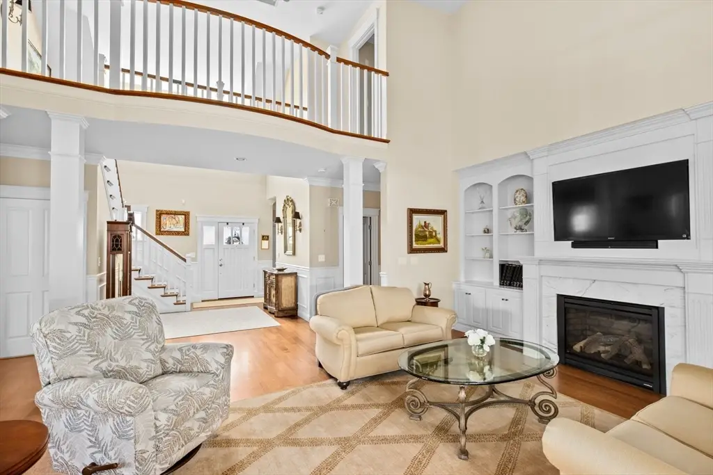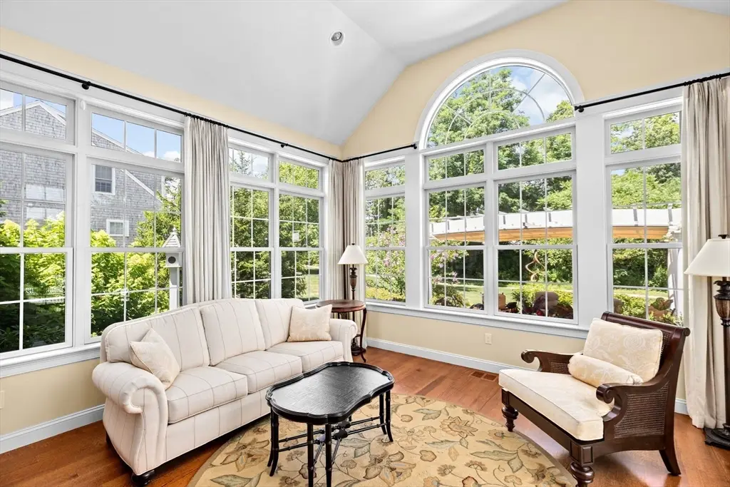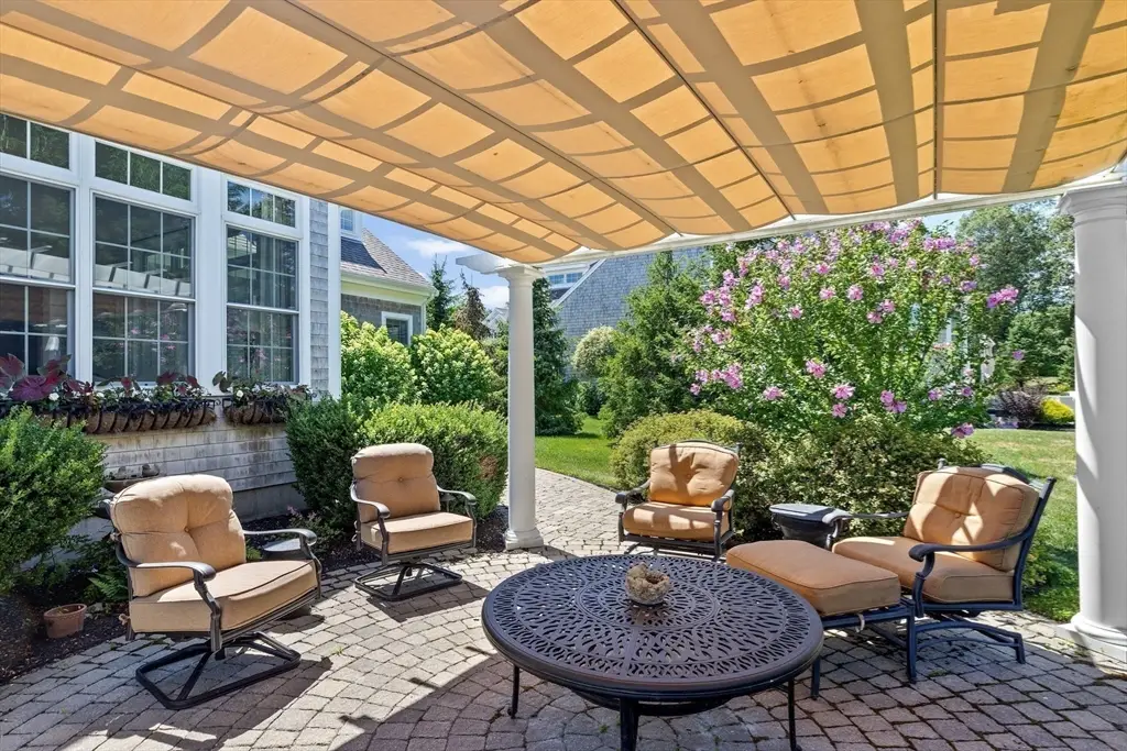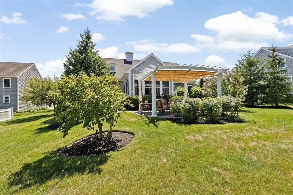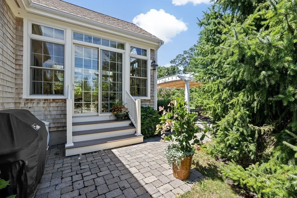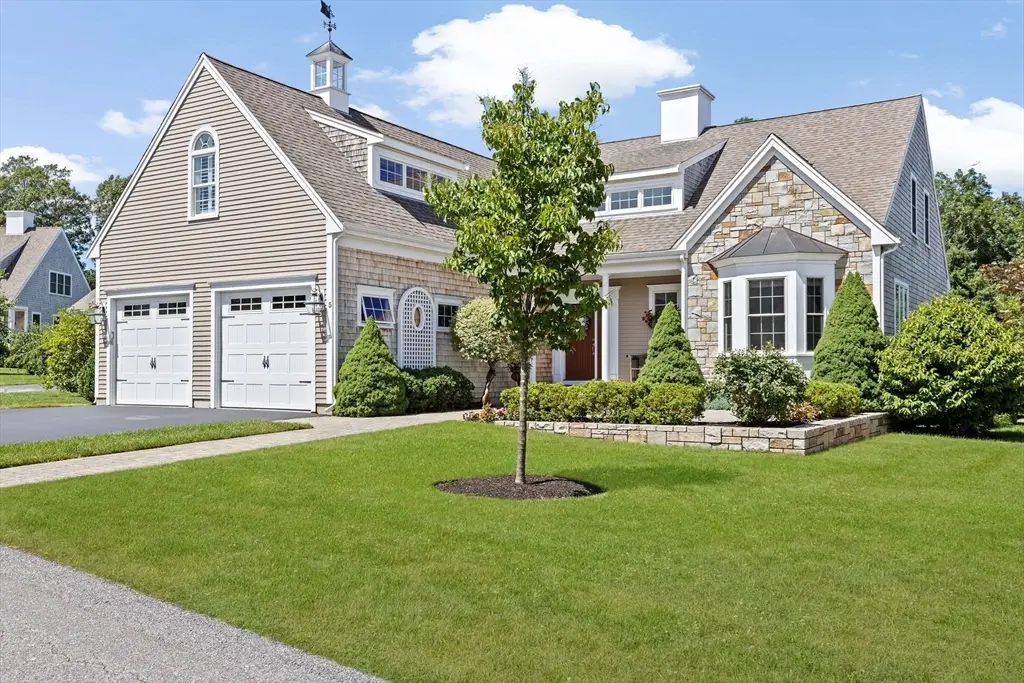 Easy Living! This pristine home blends luxury and convenience and is nestled on a quiet cul-de-sac in the highly desirable Weathervane in the Chestnut Gardens neighborhood. This condo alternative features an inviting foyer with soaring ceilings and sun-filled spaces with beautiful millwork throughout. The spacious living room with a cozy fireplace and custom built-ins flows into a sun-drenched den with a spectacular wall of windows overlooking the backyard oasis. A formal dining room is perfect for entertaining, and the light-filled chef's kitchen boasts high-end appliances, a large center island, and a charming window seat. The sought-after first-floor primary suite offers a large walk-in closet and luxurious full bath. Upstairs are two bedrooms, a full bath, and a flexible bonus room ideal for an office, gym, or playroom. Outside, enjoy a stone patio and pergola, all just minutes from the Hingham Shipyard, commuter boat, train, shopping, and dining.