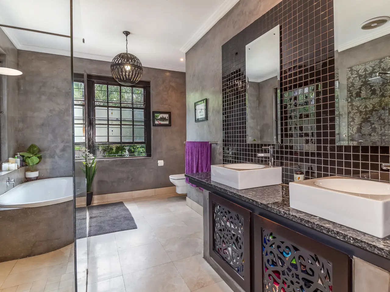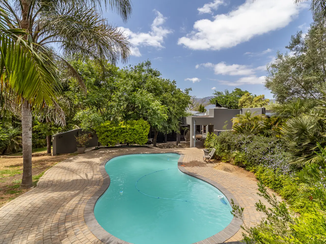 Nestled in the sought-after Hoog en Droog area, this spacious and modern family home perfectly balances comfort, privacy, and style. Experience the serenity of Paarl Mountain while enjoying a secure, peaceful lifestyle - all just moments away from top schools, convenience stores, coffee shops and restaurants. This impressive property offers five bedrooms, three ensuite, and a total of four bathrooms in the main house. Each bedroom is generously sized and fitted with air conditioning and ceiling fans for year-round comfort. The home also features a central vacuum system and central air conditioning for ultimate convenience. The modern kitchen, finished with high-quality materials, includes a walk-in pantry, while the laundry room and spacious scullery provide ample space for all your appliances and household needs. Step out onto the covered patio and enjoy the magnificent garden, complete with a swimming pool and built-in braai - perfect for entertaining or relaxing with family. A spacious garden cottage is an added bonus, ideal for guests, extended family, or rental income. The cottage includes an open-plan kitchen and lounge, two bedrooms with built-in cupboards, and a well-appointed bathroom. Additional features include two garages and plenty of extra parking space for vehicles, trailers or a caravan. Don't miss the opportunity to make this gem your home.