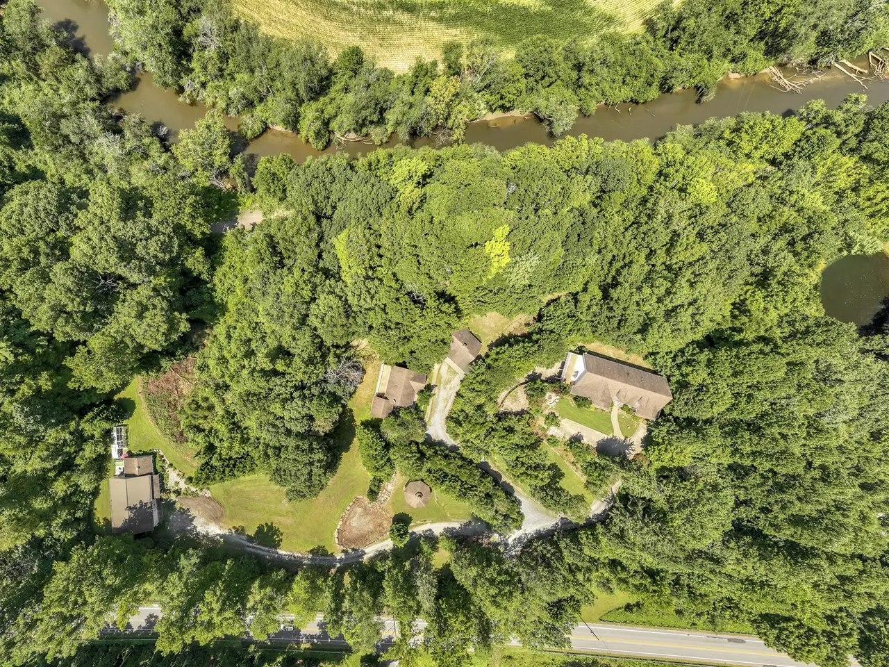 Discover a rare multi-generational retreat on over 6 private acres with direct French Broad River frontage and winter mountain views. Perfectly positioned between Hendersonville and Brevard, this one-of-a-kind property offers the freedom of no restrictions for endless possibilities. With multiple dwellings, no HOA or deed restrictions, and ample space for creative vision, this estate is an exceptional opportunity for a family compound, vacation rental portfolio, or private homestead. The main residence features vaulted ceilings, a tranquil primary suite, and a versatile terrace level ideal for entertaining, recreation, or extended family use. A separate guest house provides two fully equipped living areas, creating space for family, friends, or rental opportunities. A third single-level guest home is designed with accessibility in mind and includes both a workshop and an apartment?perfect for caretakers, aging-in-place living, or income potential. Direct river access and proximity to the Ecusta Trail ensure endless recreation right outside your door. Also listed as MLS 4180919.