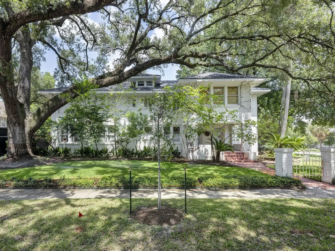 Spectacular opportunity to live/work, invest for rental income, or convert to a single family residence in beautiful Audubon Place. Located in the heart of vibrant Montrose, this enormous 1930 (HCAD) up/down duplex has endless potential and so much space to work with! Dedicated exterior entrances to each unit. Upstairs unit is approximately 2500 sf, with 2 bedrooms, 2 en-suite baths, and dedicated office space off the spacious living area. Plentiful closet space, a dedicated dressing room, and laundry area off the kitchen. The downstairs unit contains 2 beds, 2 en-suite baths, in unit laundry, and the primary bedroom has an attached sunroom. Downstairs can also be separated into two units, as the wet bar area can be used as a kitchenette and there are separate outdoor entrances to each side. Enjoy the green space of the freshly landscaped front & side yard with recent automated sprinkler system (2025), all under the graceful canopy of a breathtaking live oak tree. All info per Seller.
