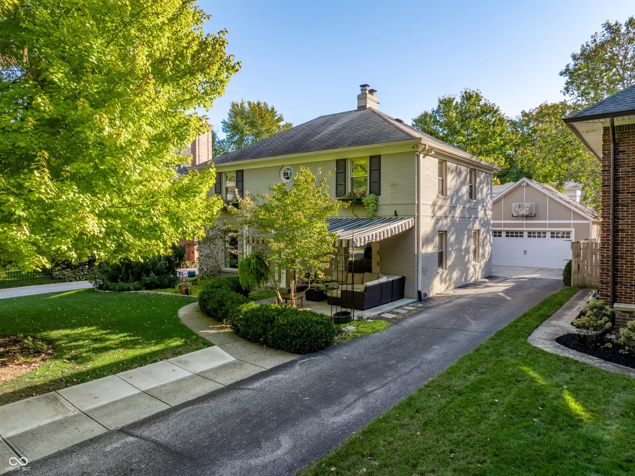Located on iconic Washington Blvd, one of Meridian-Kessler's most coveted and tree-lined streets, this all-brick 4 bed, 3 full bath home blends timeless character with thoughtful updates. Just steps from School 84 and IHM schools, the location is unmatched. A welcoming front porch with awning overlooks the beautifully landscaped yard. Inside, hardwood floors flow throughout the main level, complemented by detailed woodwork and a spacious dining room. The expansive living room features a gas fireplace with a handsome wood mantel, creating a warm focal point for gatherings. At the heart of the home, the open kitchen impresses with a large center island, gas range, stainless appliances, double ovens, and a wine fridge. Bright & cheerful, it's ideal for entertaining. The vaulted breakfast room with built-in bench seating and walls of windows offers the perfect casual dining space. A main-floor bedroom with adjacent full bath provides convenience for guests or a home office. Upstairs, 3 bedrooms and 2 updated full baths include the serene primary suite with a marble-clad bath, dual pedestal vanities, and walk-in shower. A generous walk-in closet completes the retreat. The expansive basement is designed for modern living with a home theater setup (high-end projector, surround sound, and components included), a custom 100+ bottle wine storage area, workout room, and an oversized laundry with folding station & drying racks. Recessed lighting makes the space feel open and bright. The private backyard is tailored for entertaining with a wood pergola, lush landscaping with irrigation, and plenty of room for grilling and outdoor dining. A rare feature in the neighborhood, the newer oversized two-plus car garage (built @ 10 yrs ago) offers exceptional storage/functionality. Blending historic charm with thoughtful updates, this home offers a rare opportunity to live on one of Indianapolis' most prestigious streets in the heart of Meridian-Kessler. Home generator included.