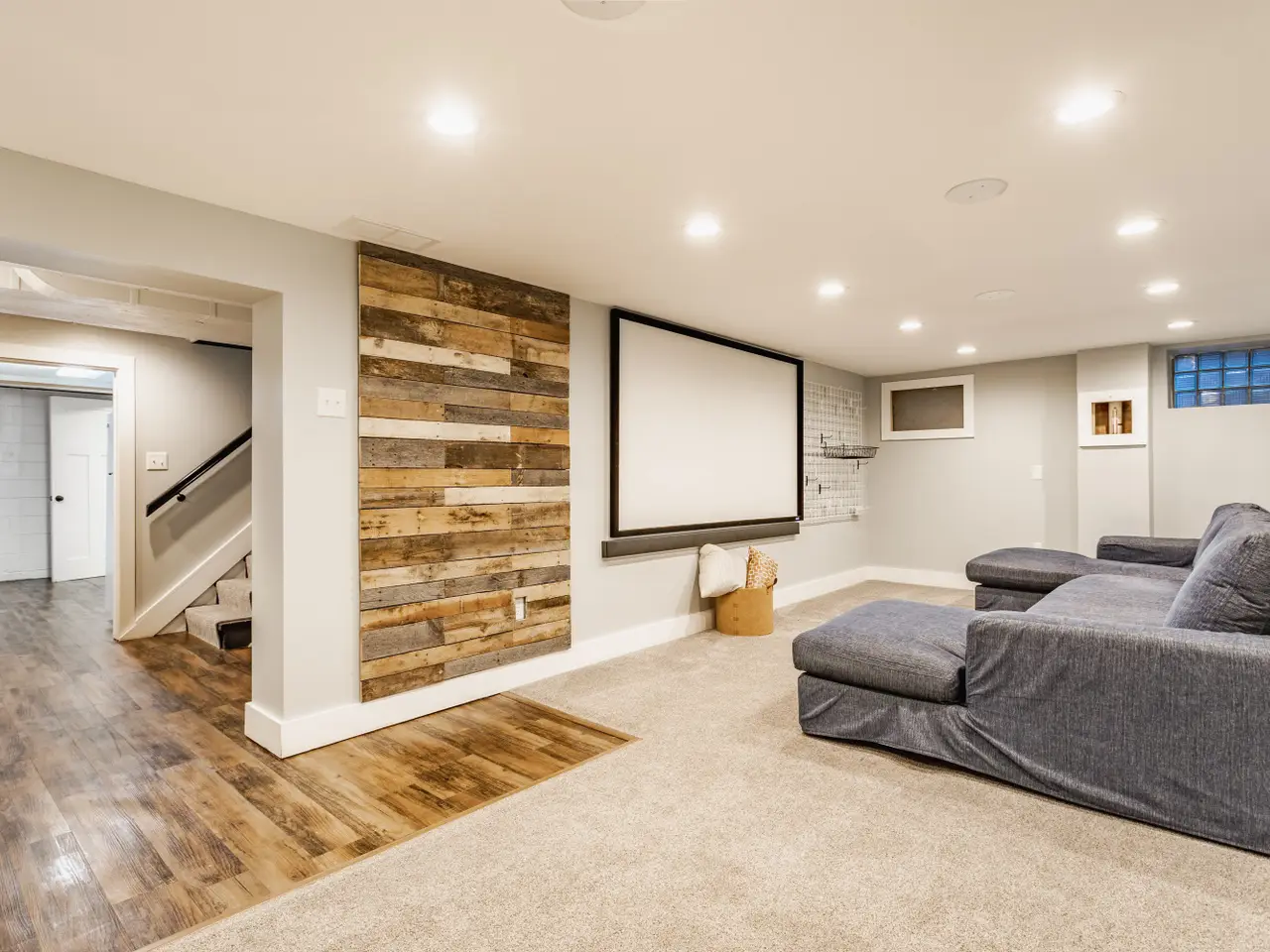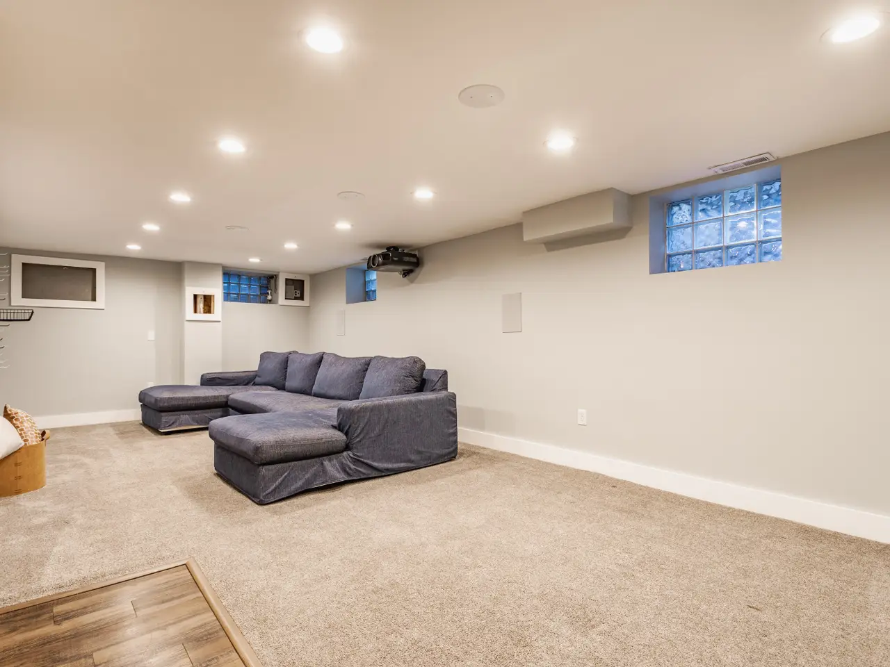 Expansive basement with workout room