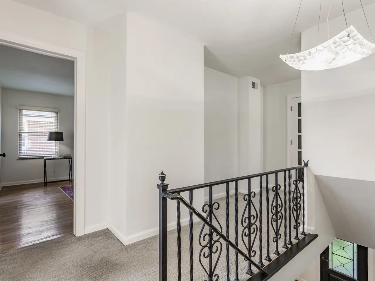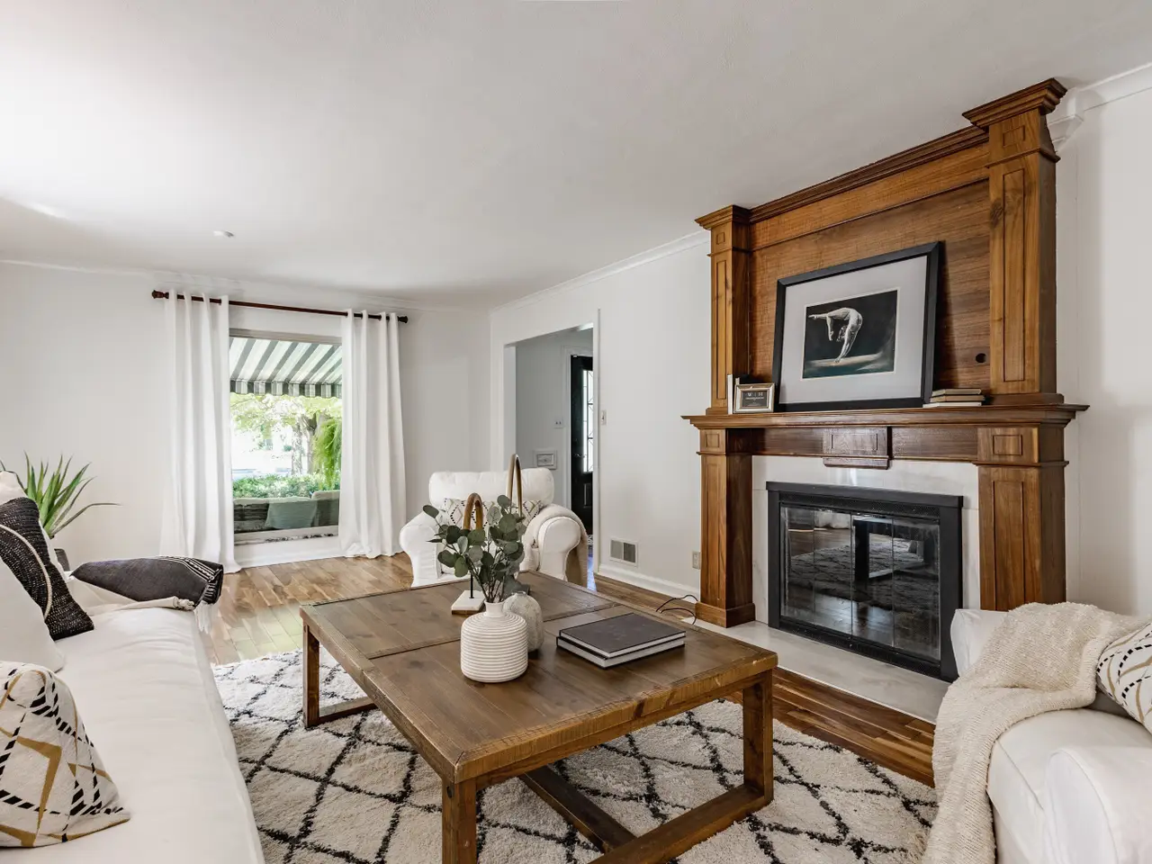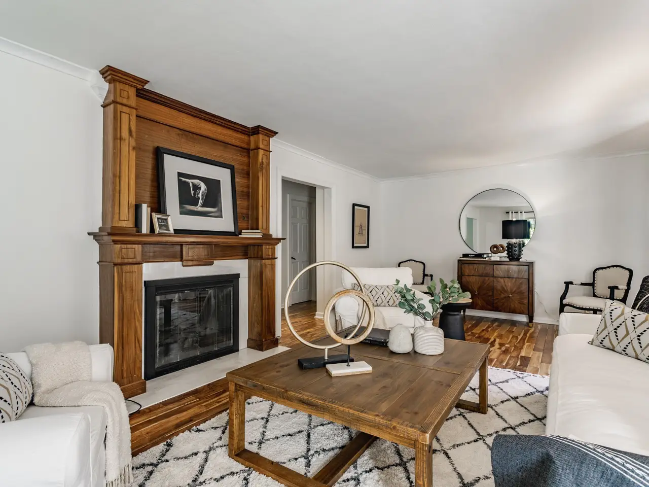 Expansive living room with detailed woodwork