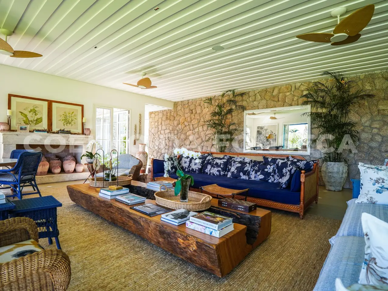 Where Nature Meets Sophistication. There are places that are not just homes, but settings for stories, unforgettable moments and a connection with what really matters. This house was born from this dream: a refuge amidst lush nature, where comfort, exclusivity and well-being come together. From the choice of the land - one of the most privileged in the condominium, elevated, with a long view and indescribable sunsets - to the smallest details of the landscaping and architecture, everything was thought out to provide a unique experience. More than 110 adult trees were carefully planted, creating a garden that blends in with the native forest, with a stream, waterfall and a lake that make the environment even more special. The grand 16x8 meter swimming pool, flanked by a raw travertine marble deck, becomes an invitation for moments of relaxation. Next to it, a pergola with space for snacks complements this perfect setting for entertaining friends and family. Inspired by classic European elegance with a contemporary touch of modern barn houses, it brings a timeless aesthetic. The soft off-white tones harmonize with the rustic stones, creating a welcoming and sophisticated atmosphere. Inside, the coziness comes to life with exclusive wicker and wood furniture, custom-designed with references to the Ralph Lauren Home style. The balcony connects the living room to the garden, providing a view worthy of a painting. The travertine marble fireplace, accompanied by sofas and armchairs for up to 16 people, creates a perfect space for moments of contemplation. Separated by a trellis with climbing plants, the gourmet dining room, pizza oven, barbecue and all the necessary equipment for unforgettable gastronomic experiences.