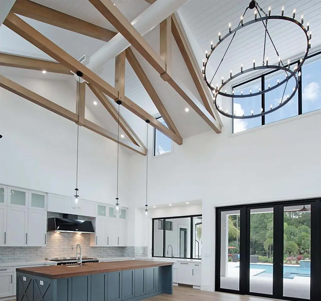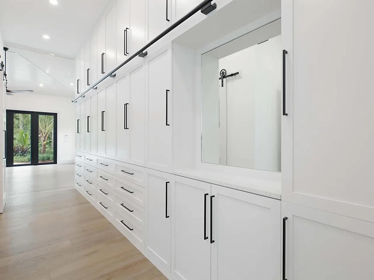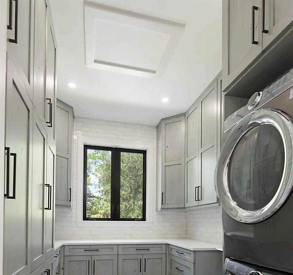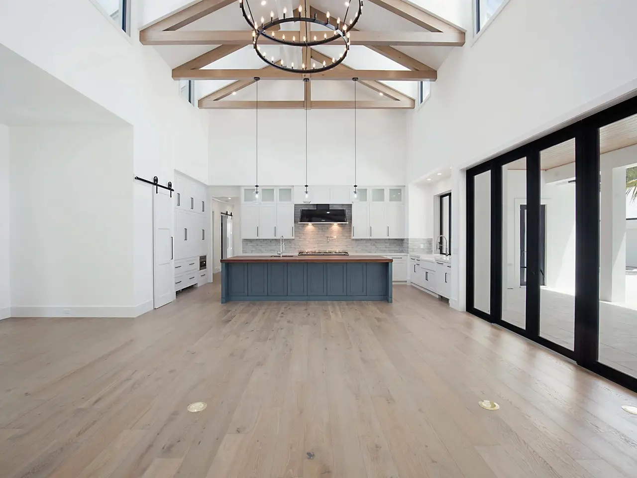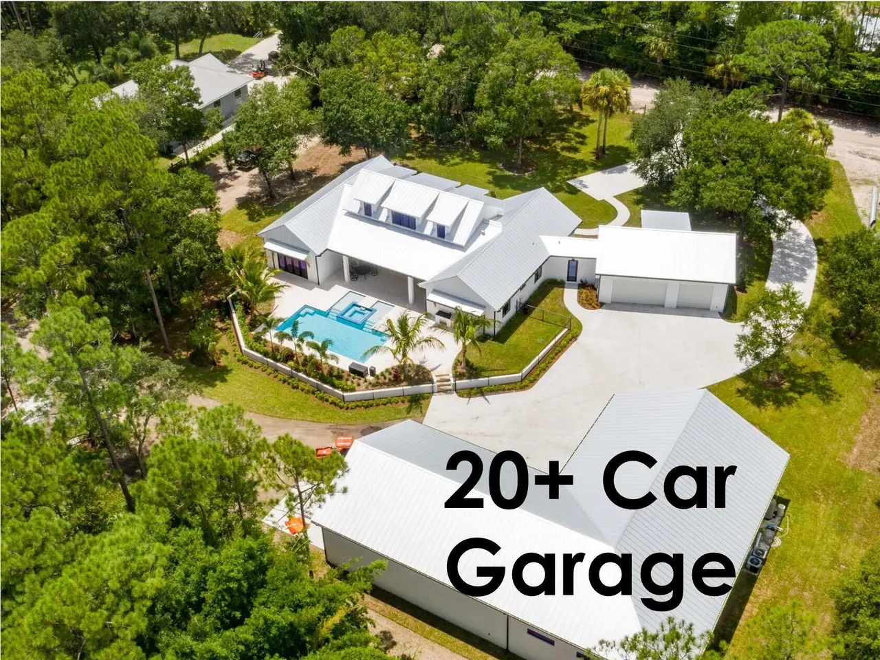 Crafted as the personal residence of a renowned custom builder, this exceptional one-story Coastal Farmhouse blends timeless design with modern functionality on a breathtaking 2-acre lot, surrounded by majestic old-growth oaks and palms on the north side of Indiantown Road. Spanning over 4,000 square feet of living space, this 4-bedroom, 4.1-bathroom home offers soaring 24-foot ceilings with designer beams, an expansive open-concept layout, and a seamless flow between indoor and outdoor living. A spacious 3-car garage is complemented by an impressive 12-car ''man cave'' garage with ceilings reaching over 20 feet—ideal for car enthusiasts, hobbyists, or anyone in need of serious storage. At the heart of the home is a spectacular great room and gourmet kitchen designed for both functionality and flair. Culinary enthusiasts will love the oversized 60-inch gas range, double farmhouse sinks, butcher block island, custom cabinetry, and walk-in pantryperfect for entertaining while staying connected with guests. Additional highlights include a generous mudroom, an oversized laundry room with ample storage, and premium finishes throughout. Step outside through large sliding glass doors into a private outdoor retreat. The resort-style pool, expansive patio, and lush landscaping create a tranquil setting for sun-soaked afternoons or elegant al fresco dining under the stars. Located just one lot off Indiantown Road, this hidden gem offers quick and easy access to shopping, dining, top-rated medical facilities, and major highways, including I-95 and the Florida Turnpike. Whether you're commuting or exploring the best of Jupiter, convenience meets serenity in this extraordinary estate.
