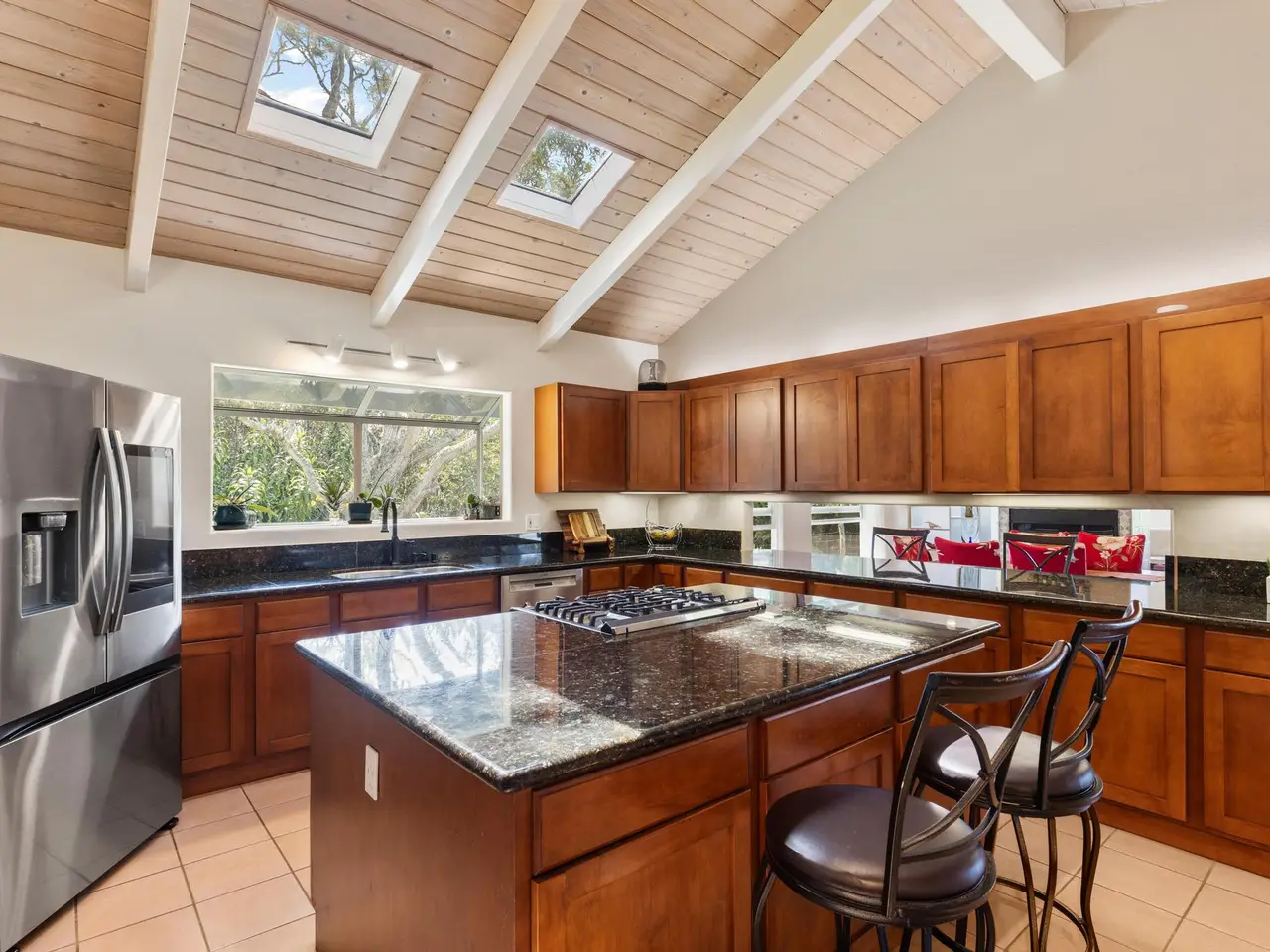 Oversized island with stone surfaces