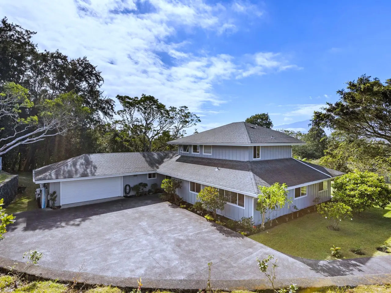 Welcome home to this meticulously maintained and thoughtfully upgraded country estate in Waimea, where cool air and sweeping views of Mauna Kea provide the perfect backdrop for everyday living. Nestled on a peaceful hillside, this spacious home blends luxury, comfort, and natural beauty into one incredible package. Awaken your inner cooking connoisseur with this spectacular kitchen. Complete with an oversized island, a new touchscreen refrigerator, and generous cabinet space. A pass-through to the formal dining room makes for a seamless hosting experience. Enjoy cozy evenings by the wood-burning fireplace, perfectly placed between the dining and living rooms. Soaring windows in the great room flood the home with natural light and offer exceptional views of the landscape. Movie lovers will be wowed by the dedicated home theater room, featuring a 4K projector and 120” screen for the ultimate cinematic experience. Upstairs you’ll find a 640 sf private suite featuring vaulted ceilings, walk-in closet, and a spacious balcony facing Mauna Kea. The ensuite bathroom encompasses glass koi-fish sinks, a walk-in shower, and a tranquil Japanese ofuro soaking tub. The 3 downstairs bedrooms are each unique. One with a private entrance and mountain views, another with his and her closets, and the other with its own ensuite bathroom. Step outside to the covered patio to immerse yourself in a botanical paradise. The property bursts with vibrant foliage and fruit-bearing trees, including citrus, apple-bananas, grapefruit, guava, avocado, dragon fruit, and more. Endless pineapple plants line the home’s perimeter, and blooming favorites like cherry blossoms, roses, gardenias, and anthuriums add intoxicating beauty and fragrance to this one-of-a-kind garden. Whether you're drawn to the tranquility of nature or the charm of country living, this exceptional home offers a rare opportunity to have it all.