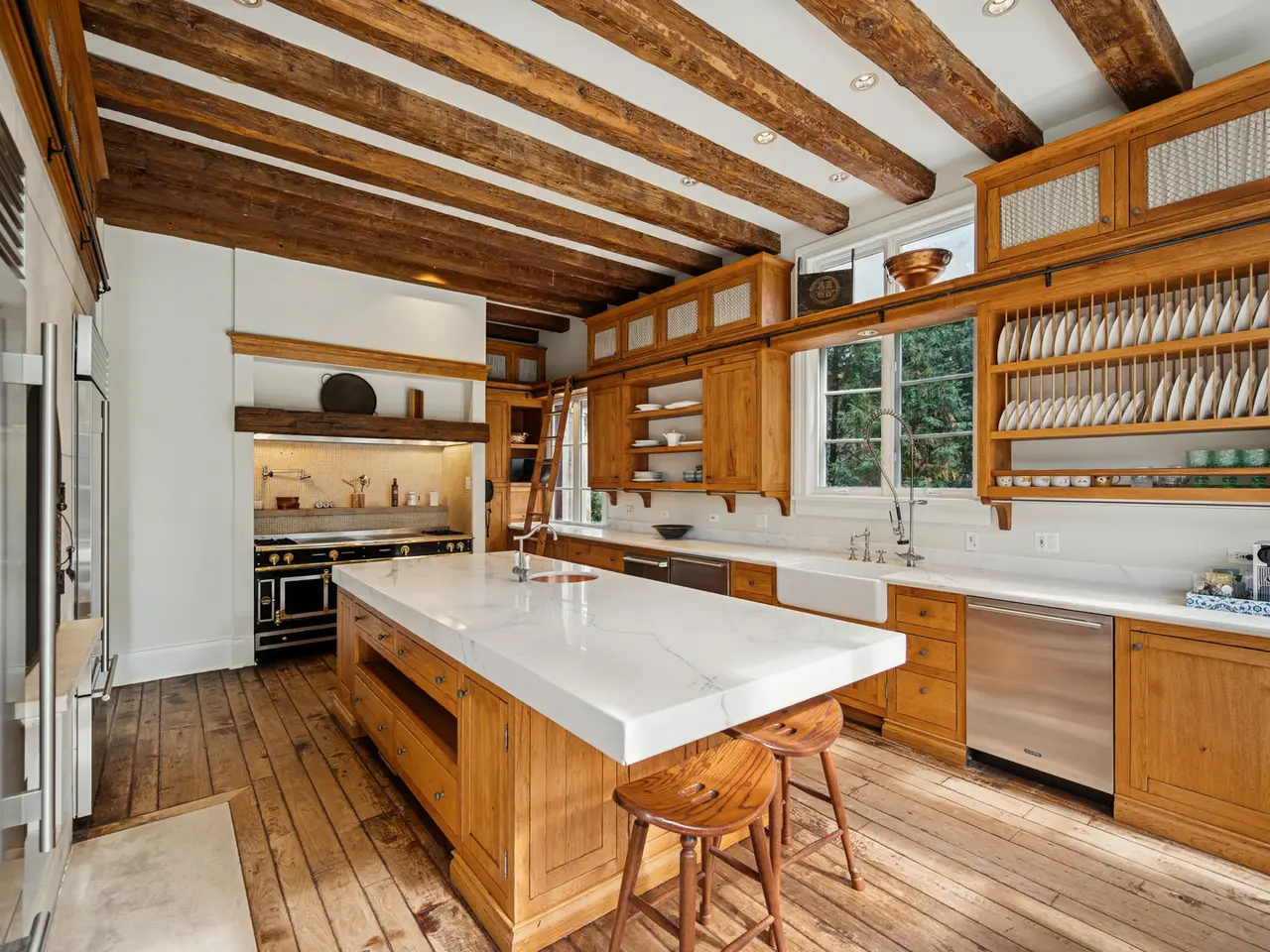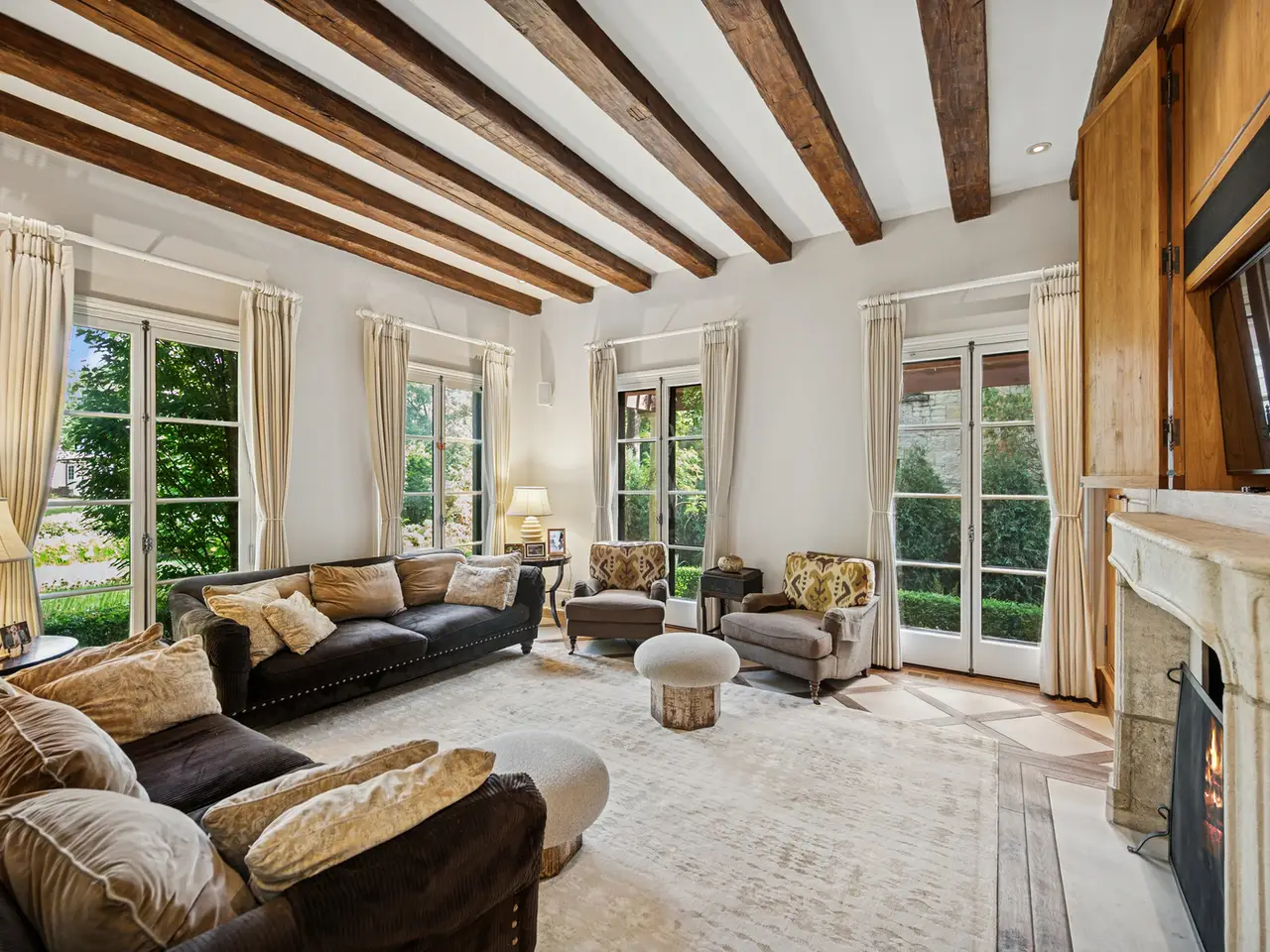 Stunning French Manor house on one of East Kenilworth's most beautiful streets. Stylish and sophisticated, this unique home is perfectly situated near the lake, train, Sears School, and New Trier High School. Luxurious landscaping envelopes the property, highlighted by a serene backyard pool. Expansive marble foyer opens to gracious living room and charming dining room. Dramatic floating staircase. Inviting kitchen with large marble island, fireplace, Grand Palais La Cornue range and table area. Bright sunroom, family room, handsome office and full bath complete the first floor. Second floor includes the primary suite with balcony and 3 more ensuite bedrooms--one with balcony. Third floor offers versatile playroom/lounge area, ensuite bedroom with kitchenette. Lower level exercise room and full bath. An elevator services all four levels, and the attached garage offers parking for 5 cars and EV charging setup. Truly a one-of-a-kind North Shore gem!