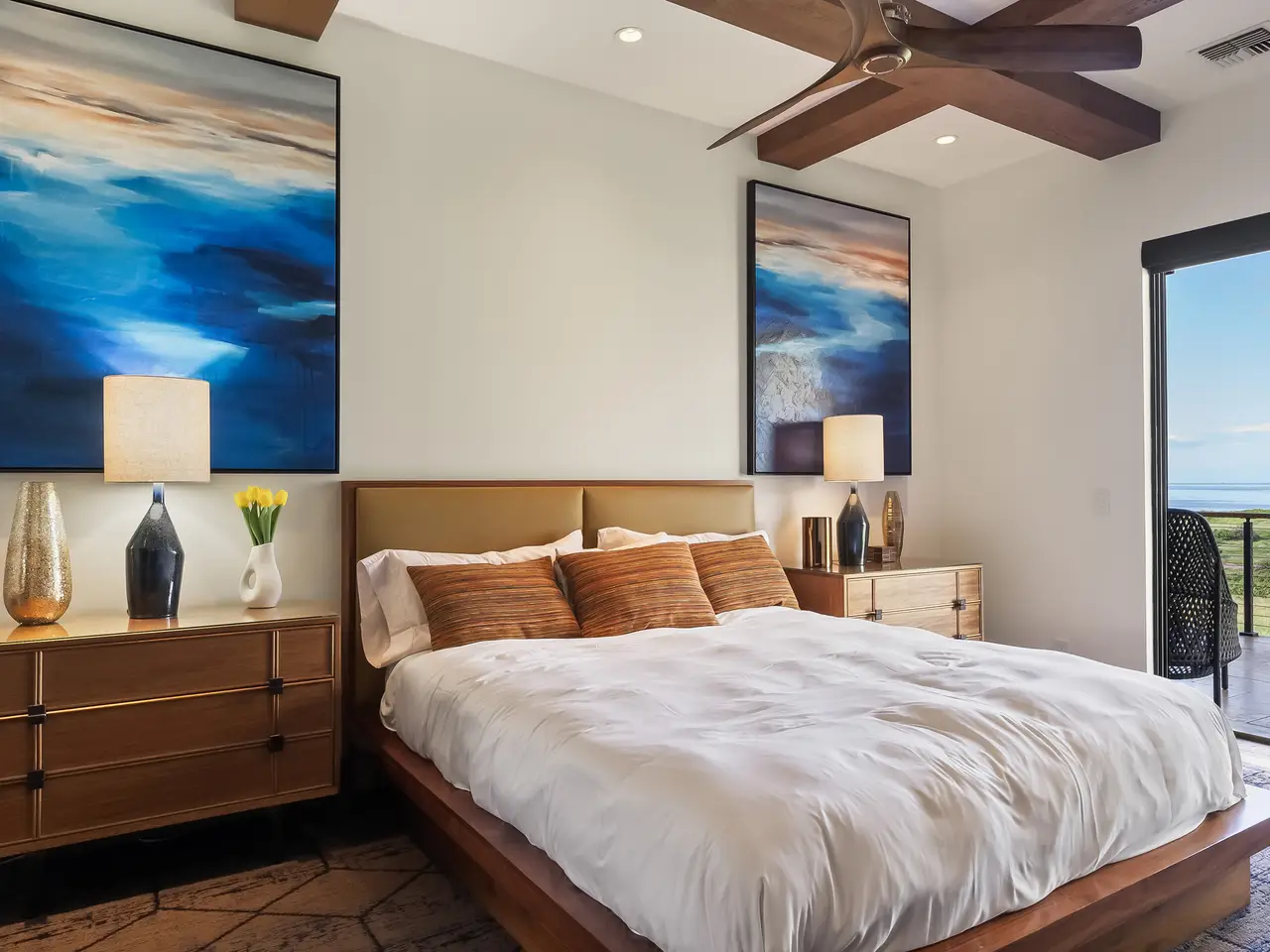 Sunlight and ocean breezes flow through 21 feet of bi-folding floor-to-ceiling glass doors, complemented by soaring 14-foot ceilings that blur the boundaries between home and horizon. Step into this South Maui beachfront estate, where elegant stone columns welcome you to a true masterpiece. The open-concept spaces unfold effortlessly, anchored by a chef's kitchen featuring custom white oak cabinetry with an interior finish that adds warmth and depth, quartzite countertops, tumbled Belgian limestone tile accents, hand-scraped French oak flooring, professional-grade appliances, and a generous breakfast bar— the perfect hub for shared meals, laughter, and connection. A floating staircase leads upstairs to the bedrooms, where the primary suite awaits as a serene sanctuary for the soul. It includes a spa-inspired soaking tub, dual vanities, a spacious walk-in closet, and a private ocean-view lanai ideal for morning reflections. Each additional guest suite has been thoughtfully designed to soothe the senses, with layouts and features that prioritize comfort, including ensuite bathrooms for ultimate privacy. Outside, your personal coastal retreat beckons. Lounge poolside in the saltwater pool, host gatherings under a canopy of stars, or savor a cocktail as the sky blazes with sunset hues. A detached guesthouse with a full bathroom and a two-car garage offer flexible additional space, while integrated smart home technology blends modern convenience into this tranquil, soul-nourishing haven. The adjacent lot is also for sale by the same seller. (MLS #407415, 892 S Kihei Rd) and can be purchased together.