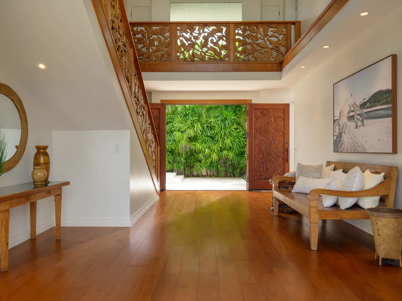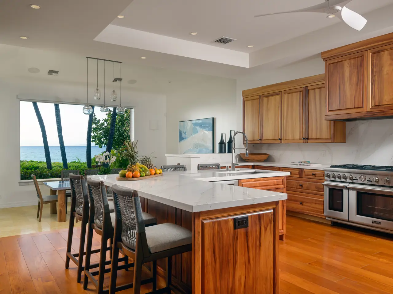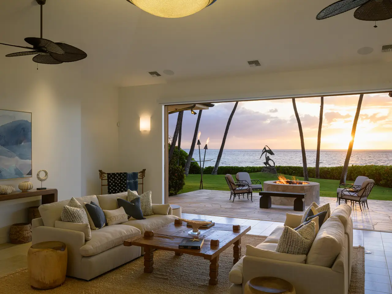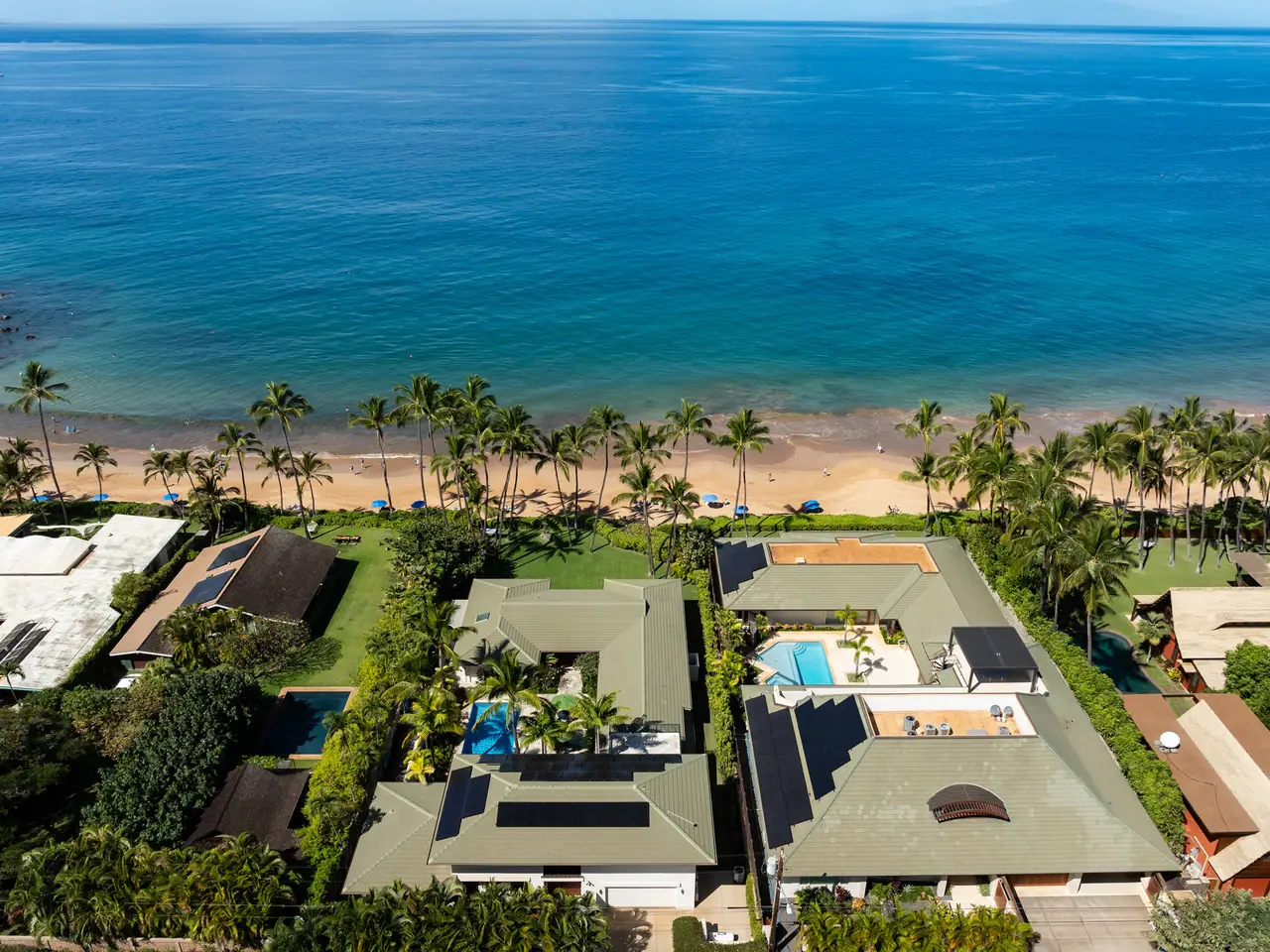 Experience the pinnacle of oceanfront luxury in this stunning, 5 bedroom, 5 bath, plus 2 half bath, 7,244 sq. ft. estate. This over a half-acre property is located within the ideal stretch of Keawakapu Beach, offering unparalleled access to Maui’s most coveted shoreline a matter of steps from the home’s living room. This architectural triumph blends contemporary elegance and convenience with the island’s natural beauty, creating a private sanctuary of sophistication and rare serenity. Designed for those who appreciate refined living and grand entertaining, this estate features 5 spacious en-suite bedrooms, multiple areas for relaxed socializing, and a seamless indoor-outdoor flow that embraces the home’s stunning pool courtyard and oceanfront experience. Every room gifts an extraordinary vantage point of paradise – between sweeping ocean views in three master suites or tranquil poolside perspectives from the guest suites. At the heart of the home, the expansive pool and courtyard form a striking focal point, linking the media room, main entry, and living areas in perfect harmony. A private poolside retreat ensures both security and discretion, ideal for intimate gatherings or large-scale entertaining. Landscaped gardens with numerous palm trees and second-level sundecks off the guest suites provide elevated spaces to soak in a front seat view of unforgettable sunsets. A spacious oceanfront lawn offers ultra-privacy, featuring a fire pit that creates an inviting ambiance, shielded from public view and accessible only through a discreet, gated beach entrance. Whether you seek a primary residence, a lavish vacation home, or an island retreat, this estate is designed for those who desire premium beachfront living with an ultimate feel of privacy. A rare opportunity to own the most memorable oceanfront lifestyle in Maui.