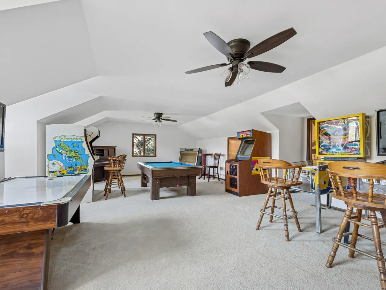 Staycation never got better! Spacious Tudor home with 6 bedrooms, 4.1 baths plus a bonus room over the garage including pinball machines pool table and jute box. All the bedrooms have ceiling fans. The 6th bedroom is on the main floor with it own bath and shower. Could be an office as well. Step into an incredible enclosed indoor addition with heated pool. 7.6 feet at the deep. Soaring cedar planked ceilings, hot tub and big screen TV. separate bath and shower. Plus a workout room with walkout to a covered patio. 3 car garage. New roof and gutter and recently painted. Exterior trim and cedar stained. Interior has new rich upgraded waterproof vinyl planked floor on the entire first floor for easy care. Beautiful walnut kitchen cabinets with new quartz counter and recessed lighting. New double convention oven and gas five burner cooktop. New dishwasher, and 2 year old refrigerator. The family room opens to the kitchen with gas start fireplace and full wet bar. The entire interior is recently painted. Baths upgraded with modern tiles. 3 zoned heating 2 years old. Pool room has it own furnace and heat pump for the pool and hot tub. Basement has a half bath, freshly painted with table tennis and game watching area. additional features include a gas generator and upgraded 200 amp electric service. Wonderful yard with cedar deck and patio over looking raised gardens. If you love an active lifestyle, makes plans to see this home! Great schools and Bishop Ridge neighborhood is welcoming!