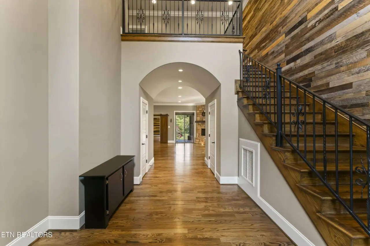 Discover the perfect blend of rustic elegance and modern luxury in this stunning open-concept home, ideally located in the highly desirable Farragut school district. Designed for both intimate family living and seamless entertaining, this 4-bedroom, 2.5-bath residence offers unparalleled craftsmanship and amenities. Cozy up on a cool evening by the gas fireplace in the main living area, or spend game day by the outdoor fireplace on the covered patio. Soaring 10-inch crown moldings add a touch of grandeur and sophistication throughout the home while the unique barnwood features create a warm, inviting atmosphere and add a custom, farmhouse-style aesthetic. When the day is done retreat to your private oasis on the main floor, featuring a luxurious en suite designed for ultimate relaxation and huge walk-in closet customized by California Closets. Upstairs you'll find an airy landing that offers additional space for a reading nook or study area, while a large bonus room provides flexibility for a media room, home gym or playroom. The second floor also includes three additional bedrooms and a full bath, providing ample space for family and guests. Enjoy peace of mind with a sealed crawlspace, ensuring superior energy efficiency and protection. Less than 5 minutes to the interstate, walking distance to the new Publix shopping center and 10 minutes to Turkey Creek's entertainment, shopping and restaurants. This home lets you experience the best of Farragut living in a home that combines exceptional style and everyday comfort.