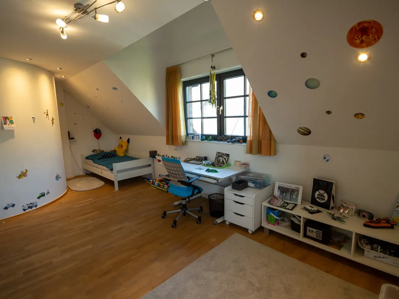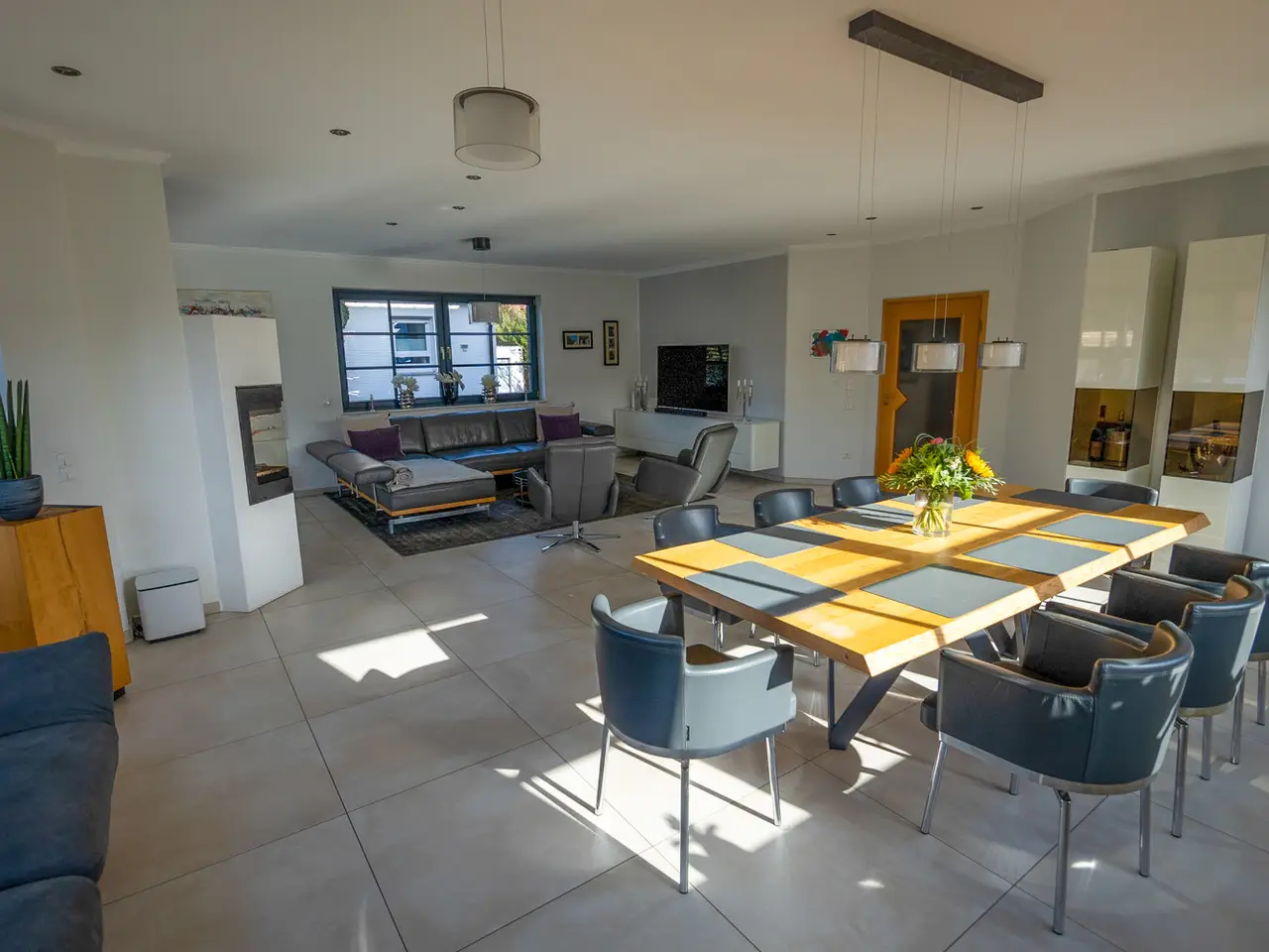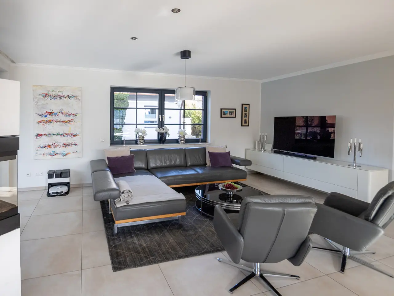 Diese exklusive Immobilie ist ein wahrgewordener Traum für anspruchsvolle Käufer. Mit einer Wohnfläche von ca. 301,67 m² zzgl. ca. 162 m² Nutzfläche im Untergeschoss und einer Grundstücksfläche von ca. 567 m² bietet dieses Haus großzügigen Raum zum Wohnen und Entspannen. Das Haus verfügt über insgesamt 8 Zimmer, darunter 5 Schlafzimmer und 4 Badezimmer. Das Haus wurde 2001 fertiggestellt und befindet sich in neuwertigem Zustand. Die neuwertige Ausstattung lässt keine Wünsche offen und zeugt von Luxus und Modernität. Die oberen Etagen des Hauses bestehen aus Massivparkett und Keramikfliesen. Die modernisierten Badezimmer präsentieren sich in zeitgemäßem Design. Eine Fußbodenheizung, betrieben von einem modernen Gaskessel mit Warmwasserversorgung, sorgt für ganzjährigen Komfort. Das Anwesen bietet vielfältige Annehmlichkeiten, darunter eine technisch perfekte Einbauküche, eine überdachte Terrasse, einen Außenpool, eine vorinstallierte Sauna und einen Fitnessraum. Das Hauptschlafzimmer verfügt über ein Ankleidezimmer und ein geräumiges Badezimmer mit Badewanne, Dusche und WC. Im Obergeschoss sorgt ein separates Kinderbad mit Badewanne, Dusche und WC für zusätzlichen Komfort. Intelligente Jalousien und eine Fenstersteuerung runden das Angebot ab. Zum Haus gehören eine große Doppelgarage und zwei Stellplätze. Eine überdachte Terrasse mit Blick auf Pool und Garten lädt zum Verweilen im Freien ein. Hier können Sie an klaren Abenden den Sonnenuntergang genießen. Teilweise bodentiefe Holzfenster mit Doppelverglasung sorgen für lichtdurchflutete Räume und ein angenehmes Wohnambiente. Ein Kamin im Wohn-/Essbereich spendet an kalten Tagen wohlige Wärme. Die separate Einliegerwohnung im Obergeschoss ist nur durch ein Ständerwerk von der anderen Wohneinheit getrennt und kann jederzeit wieder zu einer Einheit zusammengefügt werden. Diese Immobilie bietet ein Höchstmaß an Exklusivität und Komfort und ist ideal für anspruchsvolle Käufer, die Wert auf hochwertiges Wohnen legen.