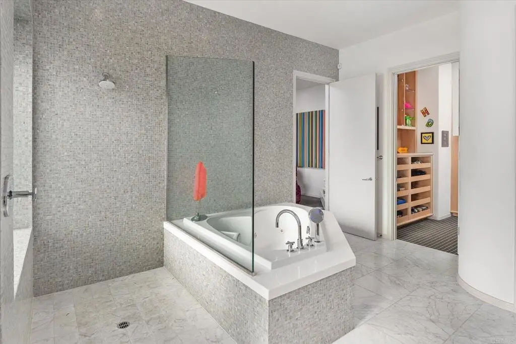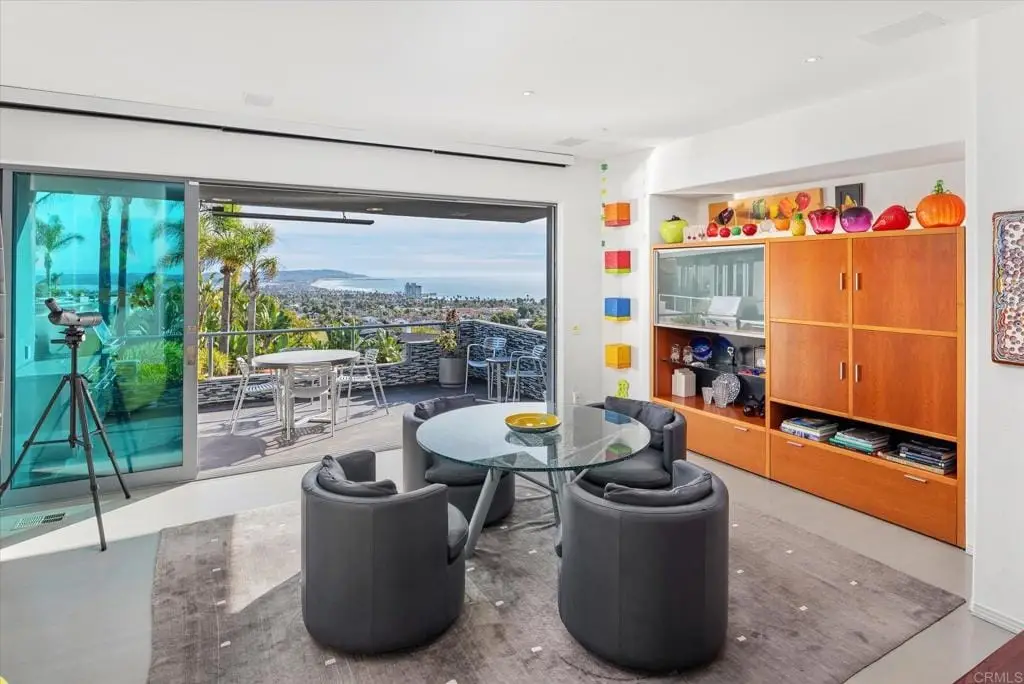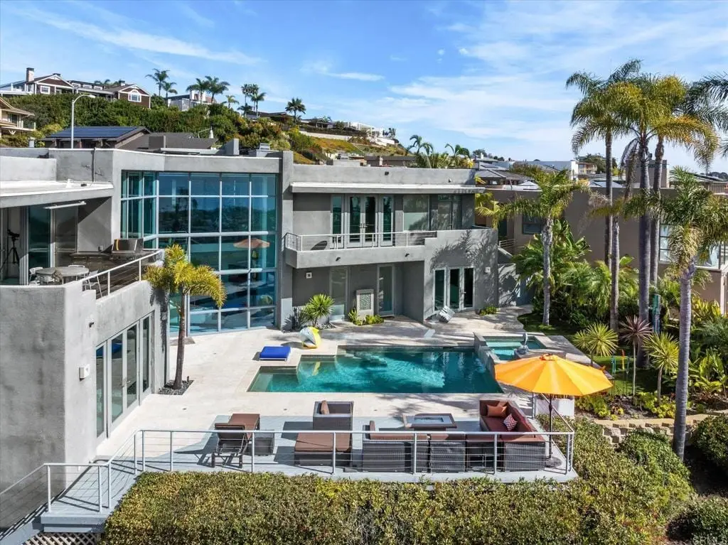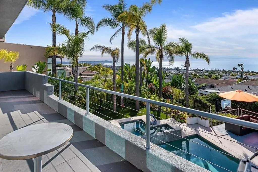 Discover the exquisite allure of 5490 Rutgers Rd in La Jolla, where contemporary architecture meets breathtaking ocean views at a unique site that faces to both the south and west. This exceptional 4BR/5.5BA residence with bonus rooms including a gym and office boasts an ideal floorplan, with the main living areas, gourmet kitchen, and luxurious primary suite conveniently located on the entry level. Step into a dramatic two-story atrium, flooded with natural light and adorned with floor-to-ceiling windows that instantly draw your gaze to the stunning ocean panorama. The expansive primary suite, open living and dining rooms, and beautifully appointed kitchen all seamlessly embrace these incredible vistas. Even the inviting downstairs family room and pool area offer captivating views of the horizon, twinkling evening lights, and downtown, all while ensuring complete privacy. The master closet is massive and the adjacent bath has its own private ocean view balcony. This luxury home is designed for those who appreciate the finer things in life, featuring wine storage, dedicated office, gym, and spacious 2-plus car garage. Additionally, a separate guest or nanny suite complete with access to a full pool bath enhances the home's versatility. Indulge in outdoor leisure with a sports court, putting green, built-in fire pit in the welcoming entry courtyard, and an array of architecturally striking design elements that provide the perfect backdrop for showcasing a large art collection. The tranquil location, exceptional quality, thoughtful layout, and remarkable features of this home create a truly magical lifestyle that is rarely found.