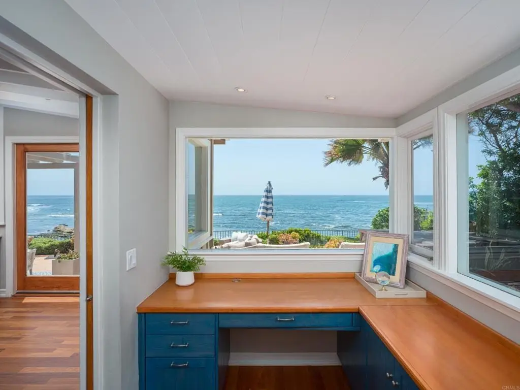 Positioned prominently above the iconic rock that is the namesake of one of La Jolla's favorite neighborhoods, the house at Bird Rock has an incredibly desirable combination of features. It offers panoramic, front row views with a bird's eye perspective of the vibrantly colorful and ever-changing ocean below, and an orientation that perfectly frames the surf breaks and mesmerizing sunsets, all from a location in close proximity to the charming allure of the restaurants, shops, galleries and neighborhood amenities of Bird Rock. The floor plan includes an upstairs primary suite with breathtaking ocean views, four secondary bedroom suites, a powder bath and two offices, and an oceanfront patio with multiple sitting areas and a jacuzzi spa. The home is great for entertaining and enjoys a laid back yet luxurious feel that exceeds expectations set by the understated curb appeal. The site has one of the most robust and permitted retaining earth walls in the area that supports the land on the ocean side, which adds to the usable outdoor space and ensures peace of mind not always enjoyed from properties of this kind. Being adjacent to a stairwell down to the water provides the best of all worlds - bluff top views, secure privacy for a beach location, and easy access to all of the natural wonders of the ocean below. Homes with the lifestyle features that are appurtenant to this property are scarce and the value of such a limited offering cannot be measured in dollars alone.