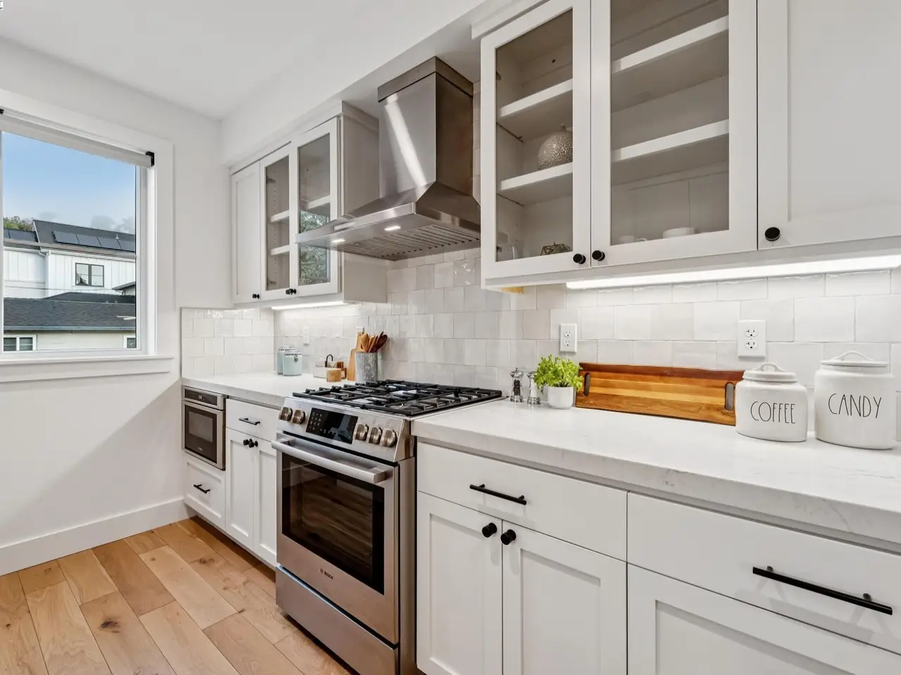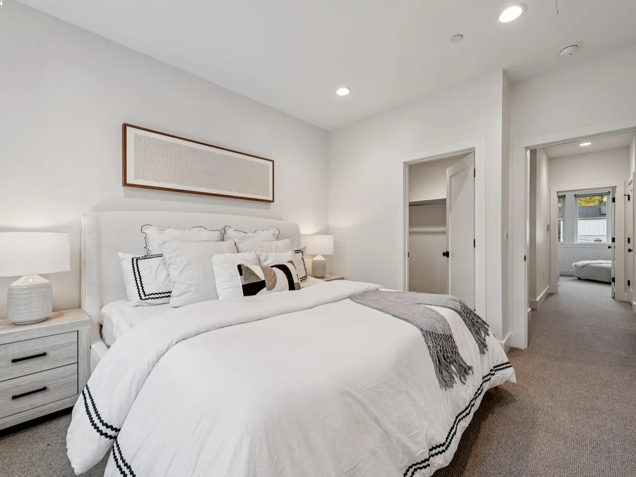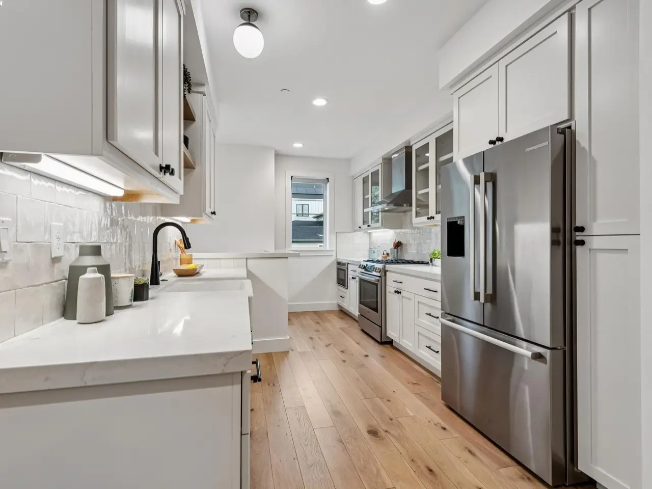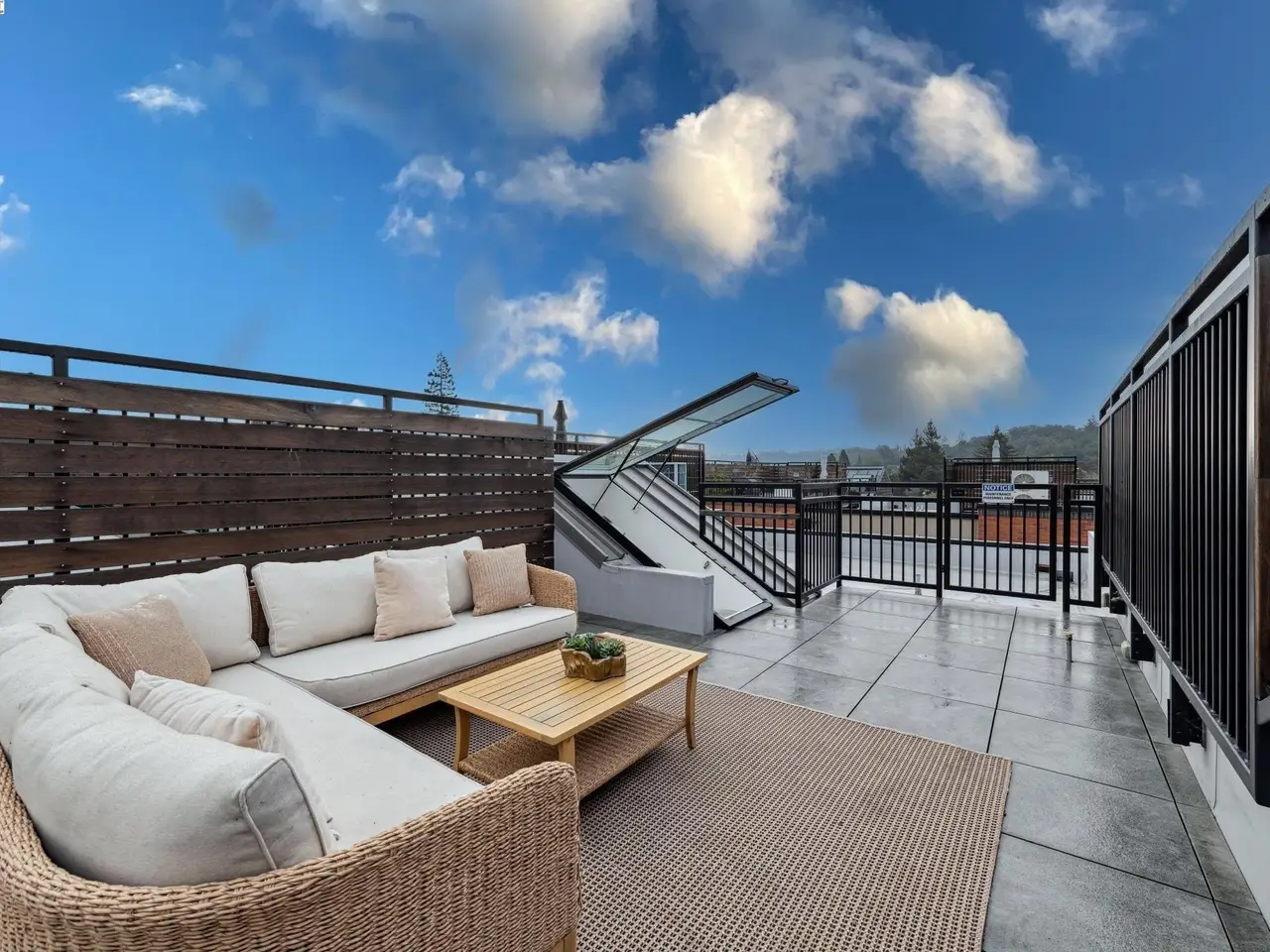 Experience modern luxury & everyday comfort at The Mill on Brown, one of Lafayette’s most desirable newer communities. Built in 2022, this beautifully designed townhouse-style condo offers 2 bedrooms, 2.5 baths, a dedicated office or flex room (possible 3rd bedroom), an attached 2-car garage & a private rooftop deck with panoramic views. The main level features an open & airy floor plan w/spacious living & dining areas, a sleek modern kitchen, laundry, office & 1/2 bath. Upstairs are 2 ensuite bedrooms, including a luxurious primary suite w/his-and-hers walk-in closets & a stylish bathroom. The kitchen impresses w/custom white oak cabinetry, quartz countertops, stainless steel appliances, a gas range, farmhouse-style sink, beautiful backsplash & built-in wine storage. Designer touches include wide-plank engineered hardwood floors, smooth-finish walls, modern lighting, remote-controlled custom shades & energy-efficient dual-pane Andersen windows. Additional highlights: tankless water heater & a garage pre-plumbed for an EV charger. Enjoy the best of Lafayette living—just steps from popular restaurants, brewery, cafés, shops, Whole Foods. Near Lafayette Reservoir, hiking trails, BART, freeway & top-rated schools. Convenient, contemporary living in a charming suburban setting!