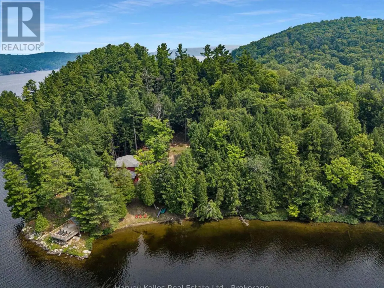 Lake Views That Surround You. Millions of Memories to Make. And, One Rare Opportunity. This package includes two separately deeded lots. The first property includes 429 feet of shoreline along a beautiful point of land that faces with both south and west. The long lake views with deep water and a private beach with morning to night sun provide the most desirable waterfront. The second property sits on 210 feet of waterfront facing due south, well treed and perfectly positioned to make this a one of a kind property into your family legacy property, where everyone can be welcomed, happy and comfortable. This Lake of Bays retreat gives you a level of privacy and space that are seldom found. Your best days begin as you wind down the forested driveway and catch your first glimpse of the striking red cottage tucked into the trees. Inside you will be immediately captured by the view from the family room. As you continue to explore you will find 6 spacious bedrooms across 3 floors, a massive kitchen and a large 3 season sun room with 10+ seats at the dinner table and a cozy lounge area surrounded by screened weather walls that allow you to take advance of the lakeside summer breeze. Whether you are spending your afternoons lounging on one or the two generous decks over looking the water, on the dock, or wading in from the walk-in sandy shoreline with its hard-packed bottom every member of your crew will love their time here. Lake of Bays is celebrated for its boating, fishing, and endless exploring, plus from this address you're only 25 minutes to Huntsville for shops, dining, and year-round amenities. This is more than a cottage, it's the backdrop to your Muskoka story, a private retreat that blends the timeless charm of cottage tradition with the comfort of modern design all thoughtfully placed on one of the most stunning peices of land Lake of Bays has to offer. (id:16999)