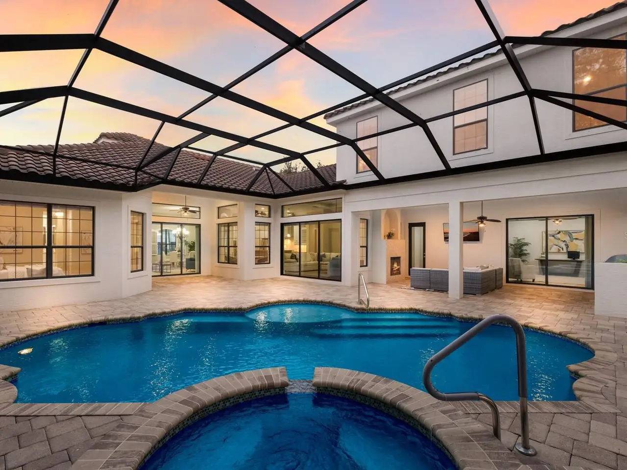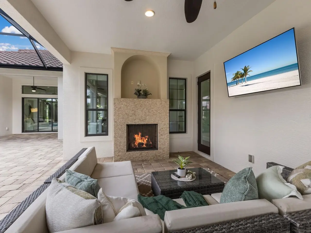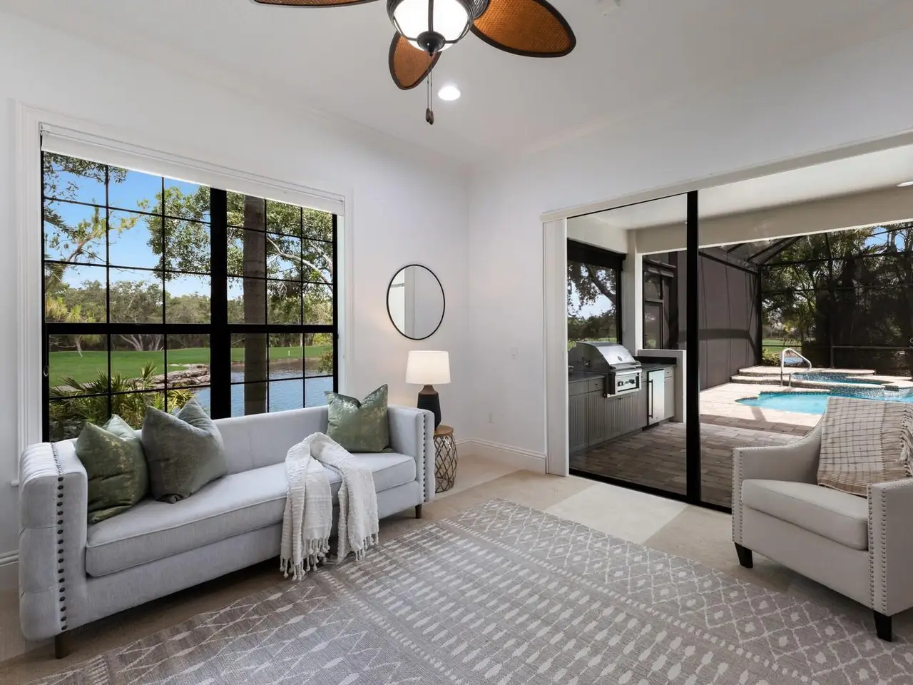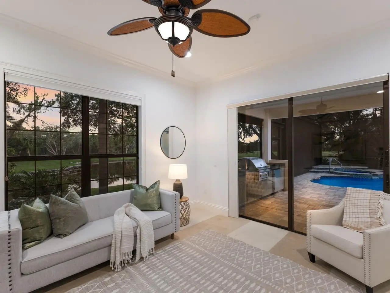 Savor one of the most breathtaking lake, golf, and preserve settings in Lakewood Ranch from this beautifully appointed Westover II model nestled in a serene, private setting on the King's Dunes golf course in The Country Club. The light and bright 3,885 square foot residence custom built by Neal Signature Homes boasts westerly views showcasing perfectly proportioned spaces, exceptional design, newly painted interior and exterior, volume ceilings, engineered wood flooring, and stunning sunsets nightly. The recently installed new panoramic screened lanai cage further accentuates the outdoor living experience, along with the heated pebble tec pool/spa with sun shelf, two separate covered areas, gas fireplace and an outdoor Summer kitchen. The surrounding vistas bring the unmatched optic experience indoors seamlessly via sliding glass doors and a plethora of transom windows, with architectural details and designer touches throughout, including tray ceilings, crown moldings, and trimmings at every turn. An invitingly large great room open to the kitchen where form, function and design reigns cohesively with sprawling granite counters, wood cabinetry, high performance appliances, breakfast bar, a walk-in pantry, and a breakfast nook area adorned with the surrounding views beyond. Off the kitchen is a butler's pantry with a wine fridge connecting to a lovely formal dining area and equally elegant living room infused with natural light. Unwind in the owner's retreat positioned on its own private wing on the main level, offering two walk-in customized closets and a luxuriously appointed spa-like bath with separate vanity stations, stand-alone shower, and a free-standing soaking tub. Family and overnight visitors alike will be right at home with the three additional guest rooms , two on the main level anchored by a full bath, while a third guest room is located upstairs off the home's fourth full bath. On the upper level, there is also an expansive bonus room offering multiple flex living space options boasting some of the most incredible golf views in Lakewood Ranch. Other notable highlights of this all-encompassing 5,351 square foot four bedroom four full bath maintenance free residence includes a perfectly located main level office/den at the rear of the residence with picturesque views just off the pool bath, a generously sized laundry room with sink and cabinetry, hurricane shutters, and an oversized 3-car garage. Within the #1 top-selling master-planned community known for its vibrant lifestyle, dining, shopping, A-rated schools and non-mandatory membership opportunities to become a member of Lakewood Ranch Golf & Country Club, which include four 18-hole championship golf courses, tennis, state-of-the-art Fitness center, clubhouses, junior Olympic-sized pool, pickleball and more.