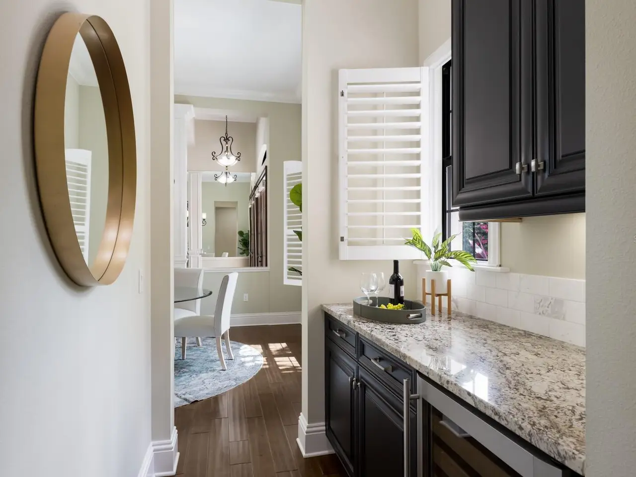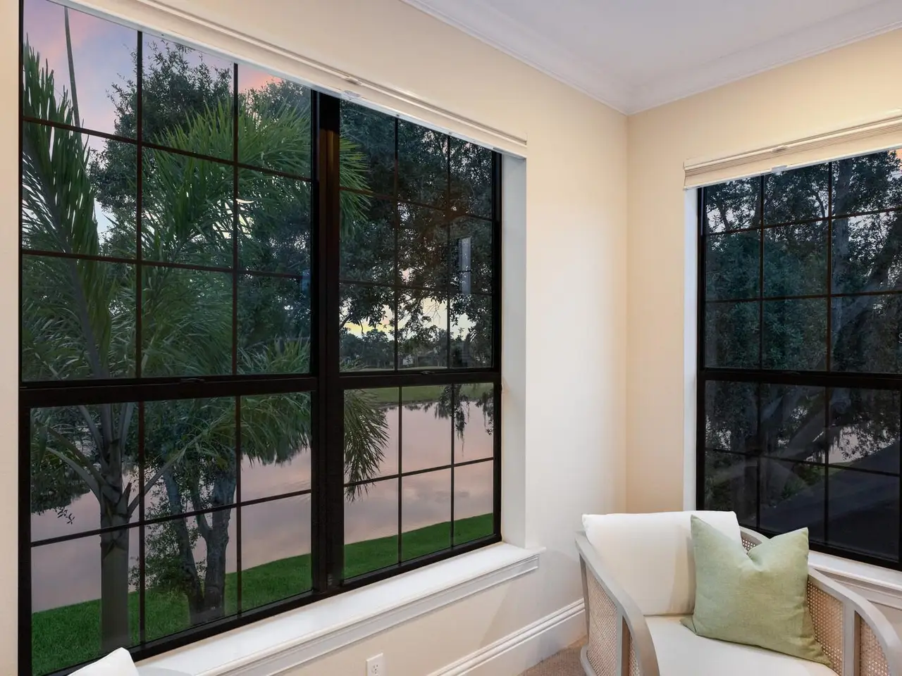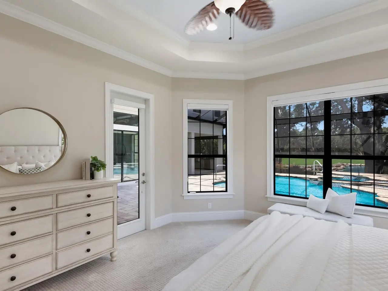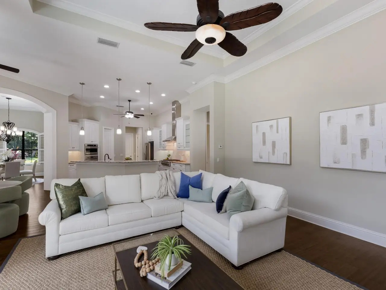 Savor one of the most breathtaking lake, golf, and preserve settings in Lakewood Ranch from this beautifully appointed Westover II model nestled in a serene, private setting on the King's Dunes golf course in The Country Club. The light and bright 3,885 square foot residence custom built by Neal Signature Homes boasts westerly views showcasing perfectly proportioned spaces, exceptional design, newly painted interior and exterior, volume ceilings, engineered wood flooring, and stunning sunsets nightly. The recently installed new panoramic screened lanai cage further accentuates the outdoor living experience, along with the heated pebble tec pool/spa with sun shelf, two separate covered areas, gas fireplace and an outdoor Summer kitchen. The surrounding vistas bring the unmatched optic experience indoors seamlessly via sliding glass doors and a plethora of transom windows, with architectural details and designer touches throughout, including tray ceilings, crown moldings, and trimmings at every turn. An invitingly large great room open to the kitchen where form, function and design reigns cohesively with sprawling granite counters, wood cabinetry, high performance appliances, breakfast bar, a walk-in pantry, and a breakfast nook area adorned with the surrounding views beyond. Off the kitchen is a butler's pantry with a wine fridge connecting to a lovely formal dining area and equally elegant living room infused with natural light. Unwind in the owner's retreat positioned on its own private wing on the main level, offering two walk-in customized closets and a luxuriously appointed spa-like bath with separate vanity stations, stand-alone shower, and a free-standing soaking tub. Family and overnight visitors alike will be right at home with the three additional guest rooms , two on the main level anchored by a full bath, while a third guest room is located upstairs off the home's fourth full bath. On the upper level, there is also an expansive bonus room offering multiple flex living space options boasting some of the most incredible golf views in Lakewood Ranch. Other notable highlights of this all-encompassing 5,351 square foot four bedroom four full bath maintenance free residence includes a perfectly located main level office/den at the rear of the residence with picturesque views just off the pool bath, a generously sized laundry room with sink and cabinetry, hurricane shutters, and an oversized 3-car garage. Within the #1 top-selling master-planned community known for its vibrant lifestyle, dining, shopping, A-rated schools and non-mandatory membership opportunities to become a member of Lakewood Ranch Golf & Country Club, which include four 18-hole championship golf courses, tennis, state-of-the-art Fitness center, clubhouses, junior Olympic-sized pool, pickleball and more.