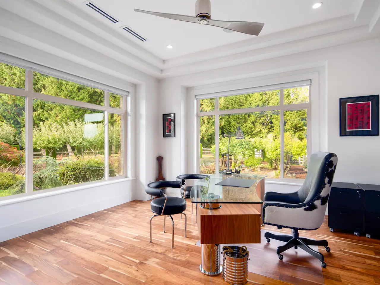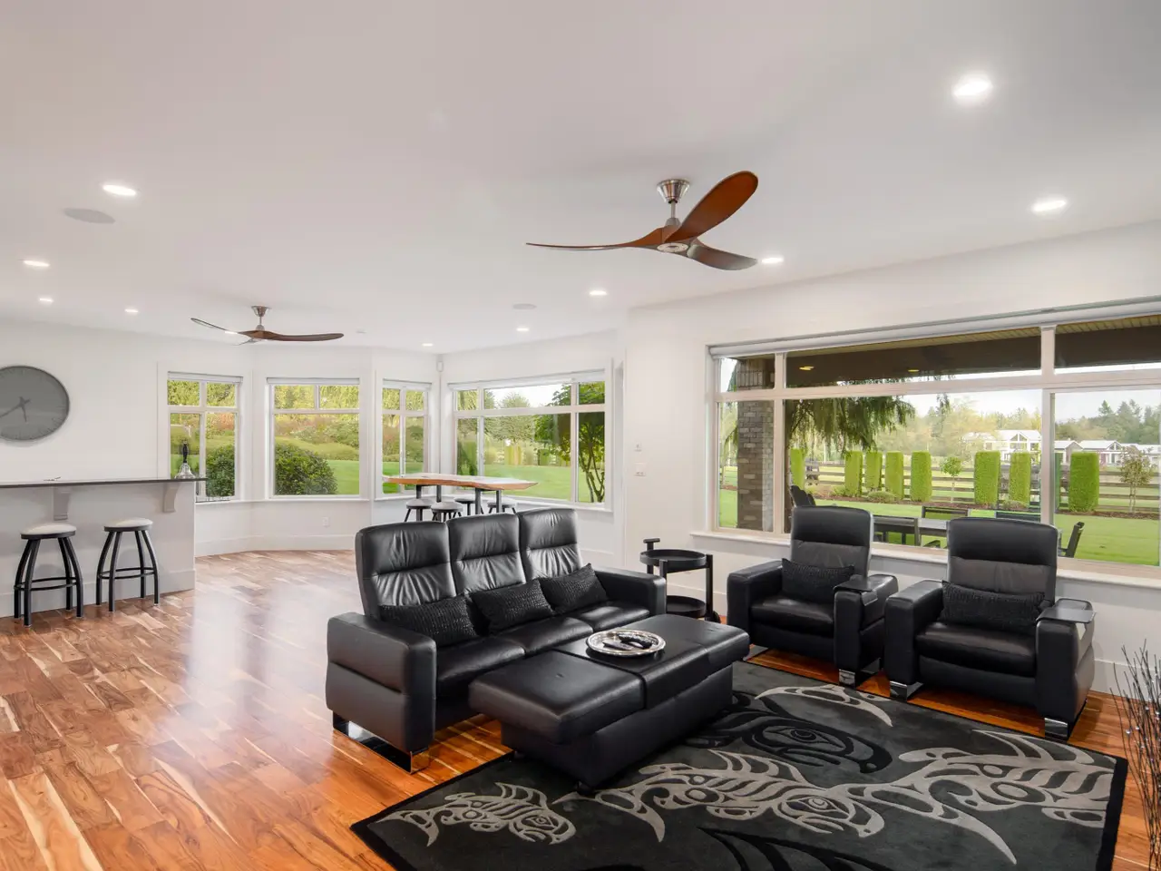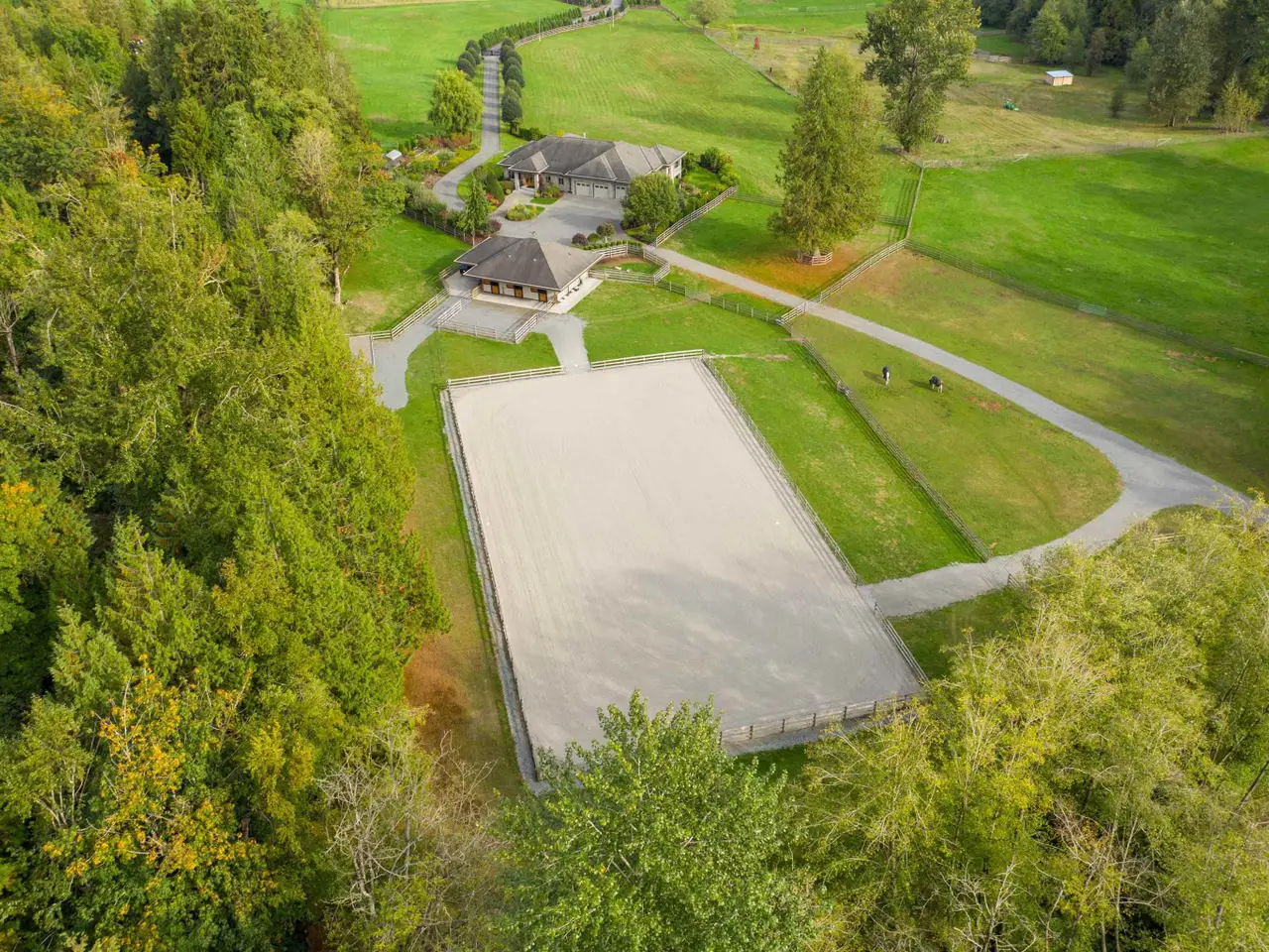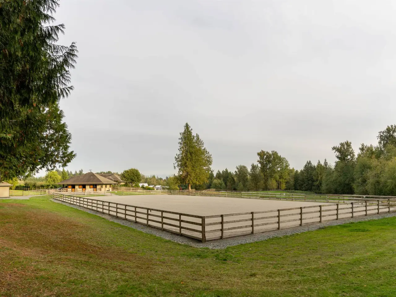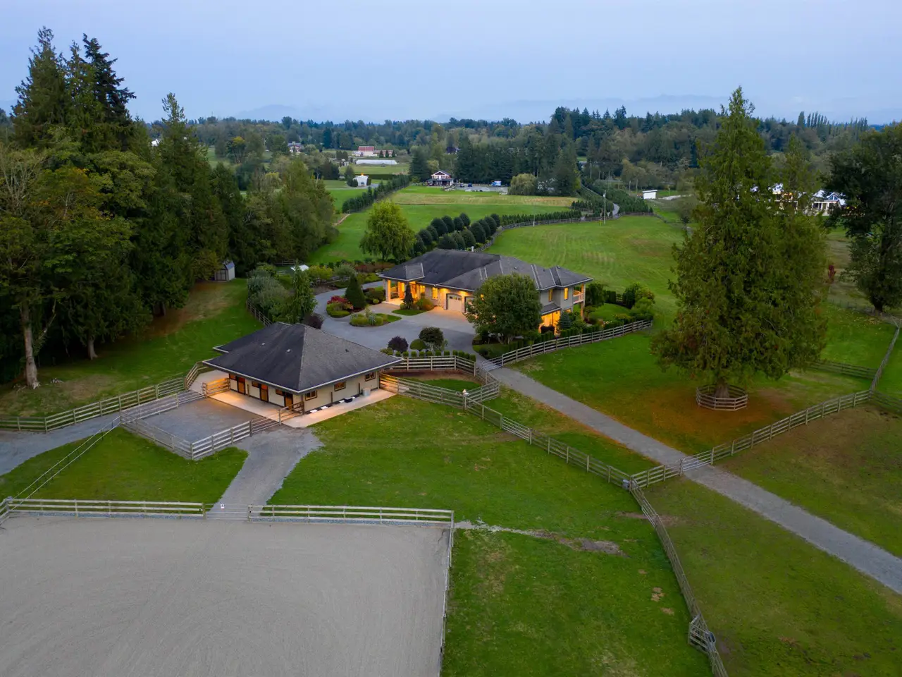 Outstanding 28.39-acre Equestrian Estate, 1000’ tree-lined commercial grade driveway with dual automated gates. Highlights include a boutique 3-stall barn, Olympic-sized outdoor arena, rolling grass pastures, and 4 km of private riding trails. The fully renovated 6412 SF, 6-bed, 6-bath home offers 10’ ceilings, two luxury kitchens, spa-inspired baths, gym, and stunning Mount Baker views. Property includes irrigated lawns, fenced paddocks, hay fields, fruit trees, and organic gardens. A rare opportunity for turnkey country living, with first class equestrian facilities.