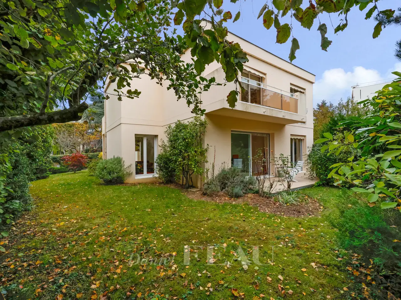 This bright architect-designed property located in a peaceful and secure private street offers 268.90 sqm of floor space and 173.50 sqm of living space as defined by the Carrez Law. It includes a 63 sqm living/reception room, dining room and study with a working fireplace, a separate fitted and equipped kitchen accessing a west-facing terrace, and a bedroom with a shower room and separate wc. Upstairs a landing with a light-well leads to four bedrooms including a master with a bathroom, wc and dressing room opening onto a balcony, a shower room and a separate wc. On a 90 sqm basement with two rooms, a utility room, a wine cellar and a garage. The property benefits from an outdoor parking space. In a convenient location near the bus lanes, Parly II shopping mall, the schools and the A13 autoroute.
