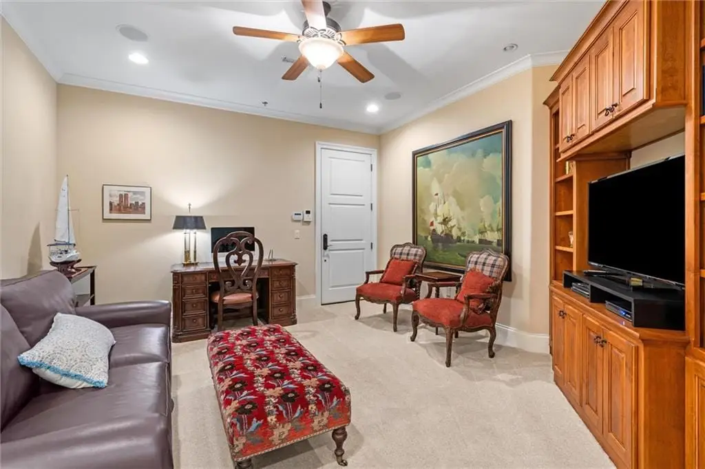 Stunning Top-Floor Condo in Highly Sought-After Parkway 133. This light-filled, top-floor condo offers luxury living with balconies on two sides of the building. From the moment you enter, youre greeted by soaring 10.5-foot ceilings and gleaming hardwood floors that flow throughout the home.The spacious great room features custom built-ins, a gas fireplace, crown molding, and access to a large balcony with remote-control shades. The formal dining room is enhanced with beautiful wainscoting, perfect for entertaining.The eat-in kitchen is a chefs dreamfeaturing a large center island, Viking stainless steel appliances including a gas cooktop, double oven, microwave, dishwasher, and refrigerator. Additional highlights include soft-close cabinetry, granite countertops, and a generous walk-in pantry with pull-out shelves.The luxurious primary suite offers a private balcony for enjoying morning sunrises, a large walk-in California closet, and a spa-inspired bath with separate granite-topped vanities, an all-tile shower with dual heads, a whirlpool tub, pocket door, and abundant storage. The second bedroom includes its own private bath with granite counters, tile flooring, and a shower. Both bedrooms feature custom plantation shutters.The den/office includes built-ins and a separate hallway exit for added safety. The laundry room provides excellent function with a sink, solid-surface counter for folding, plenty of cabinetry, and includes the washer and dryer.Additional highlights include two parking spaces in the heated garage and driveway, a private storage unit, and a newer HVAC system. The HOA covers gas, water, and trash. The balconies provide 648 sq ft of outdoor living space. Dont miss this rare opportunity to own a top-floor residence in Parkway 133where location meets convenience with easy access to shopping, dining, walking trails, and major highways.