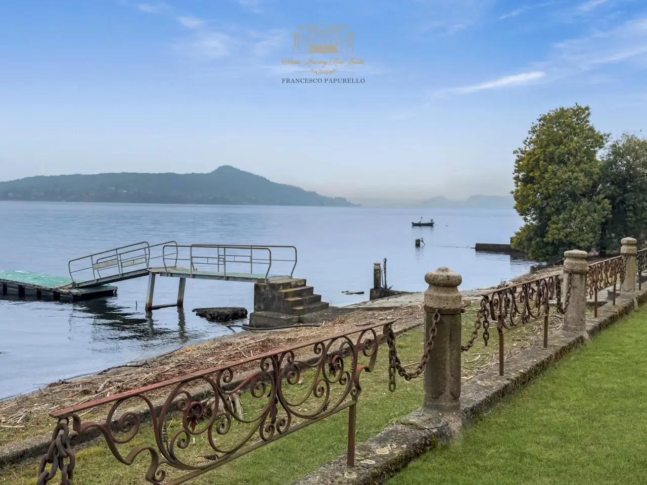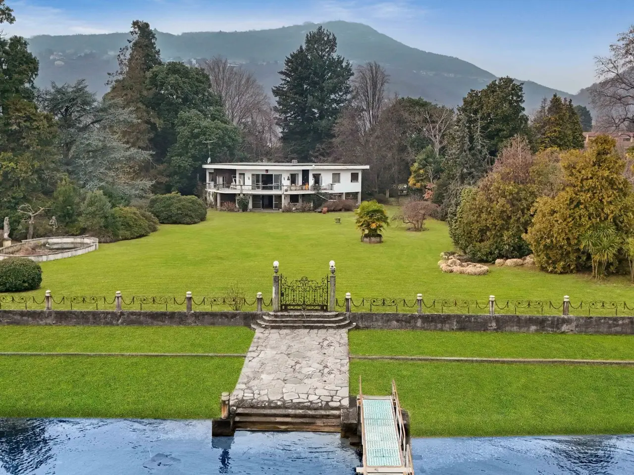 A dream reflected in the crystal clear waters of Lake Maggiore: this extraordinary luxury pieds dans l'eau villa is located on the Piedmont shore, in a simply unique location. Here, the beauty of nature blends with the elegance of architecture, creating an exclusive oasis of peace and refinement. Directly overlooking the lake, the prestigious property offers private access on the water thanks to its private beach and jetty, perfect for those who love to experience the lake in all its nuances. Flat parkland of 8,460 square meters surrounds the former greenhouses and the three residences that make up the property: Main villa of about 350 sqm Two detached cottages of 104 sqm and 64 sqm - ideal for guests or a luxury rental business Main villa The main villa is on two levels and welcomes its guests with a large hexagonal entrance hall that leads to the bright living room, overlooking a panoramic terrace. From here, the gaze is lost in the ripples of the lake, providing ever new and breathtaking scenery. The dining room and dinette, connected to the kitchen, offer a warm and convivial environment, perfect for moments of sharing. The sleeping area, located on the same floor, houses four bedrooms, three of which have spectacular lake views, and two bathrooms. Fine details, such as parquet floors and Calacatta marble in the entrance hall and living room, further embellish this home of timeless charm. Relaxation and Comfort Area Descending to the basement level, one discovers an area dedicated to relaxation and pleasure: A large living room with a fireplace that opens directly onto the garden A wine cellar perfect for wine lovers A service room A bathroom Outside, a large porch wraps around part of the villa, creating an area perfect for enjoying the gentle lake breeze. A convenient garage completes the property. Independent Villas The two independent cottages, surrounded by greenery, represent an added value for those who wish to welcome guests in a private setting or develop a luxury rental business. Surfaces: the main villa, approx. 300 sq. m., plus 150 of basement floor space Villa 2, sq m 104 Villa 3, surface area about 64 sq. m. Total gross usable area sq m 468 approx. expandable by 20% of the volume, which corresponds to sq m 93.