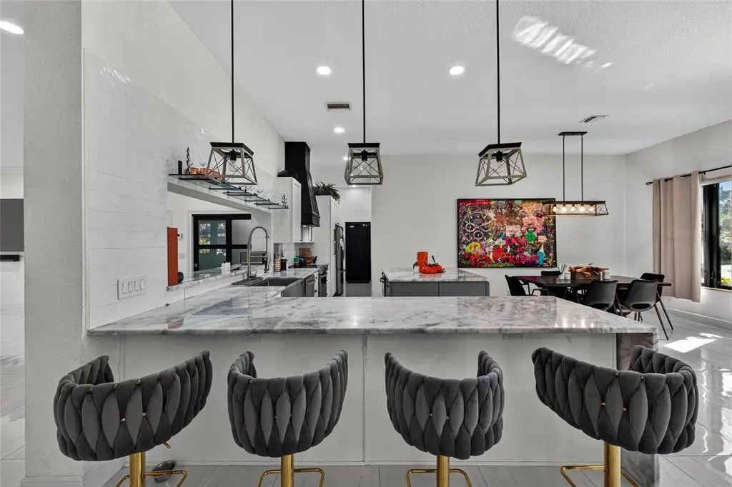Spectacular renovated 6BD/6BA estate on an oversized lot just minutes from the beach! This modern home features a bright, open floor plan with an updated, first-floor primary suite, office, and junior suite on the main level plus three en-suite bedrooms, a loft, and a huge screened terrace upstairs. The bedrooms offer generous space, custom closets, and beautifully updated bathrooms. Impact windows fill the home with natural light throughout. The brand-new kitchen boasts white shaker cabinets, quartz counters, a center island with wine storage, a farmhouse sink, stainless steel appliances, and a wraparound breakfast bar. Enjoy entertaining in your private backyard oasis with a covered living area, tropical pool, and fully fenced yard — perfect for the South Florida lifestyle!