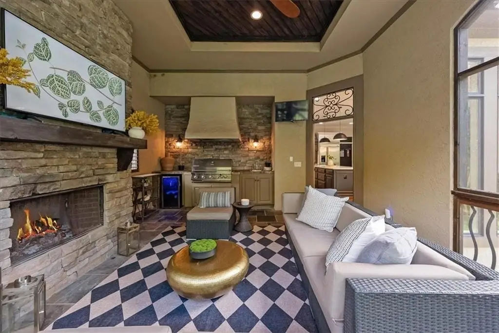 Stunning popular Koehler 1.5 story with walk out PRIVATE TREED lot that is nearly 1/2 acre in the fabulous private gated community of Loch Lloyd! 5 bedrooms, 5.5 baths, 5 fireplaces and newly remodeled gourmet kitchen with Advantium and warming drawer! Walk out finished basement with new flooring, full size bar/2nd kitchen with seating for 8, wine storge, exercise room, 5th bedroom and 2nd laundry! Newly updated Master Bath with Quartz counters and large walk-in closet. Brand new Designer carpet in Master, Master closet and staircase. All bedrooms have ensuite baths and BONUS loft upstairs for a 2nd office or playroom. Three car side entry garage, wireless alarm system, EV connection, whole home HALO water filtration system, Control Four wireless surround sound system utilized via your phone, stunning LANAI off kitchen with wood burning fireplace and a perfect lot to add a pool. So many updates, you won't want to miss this one!