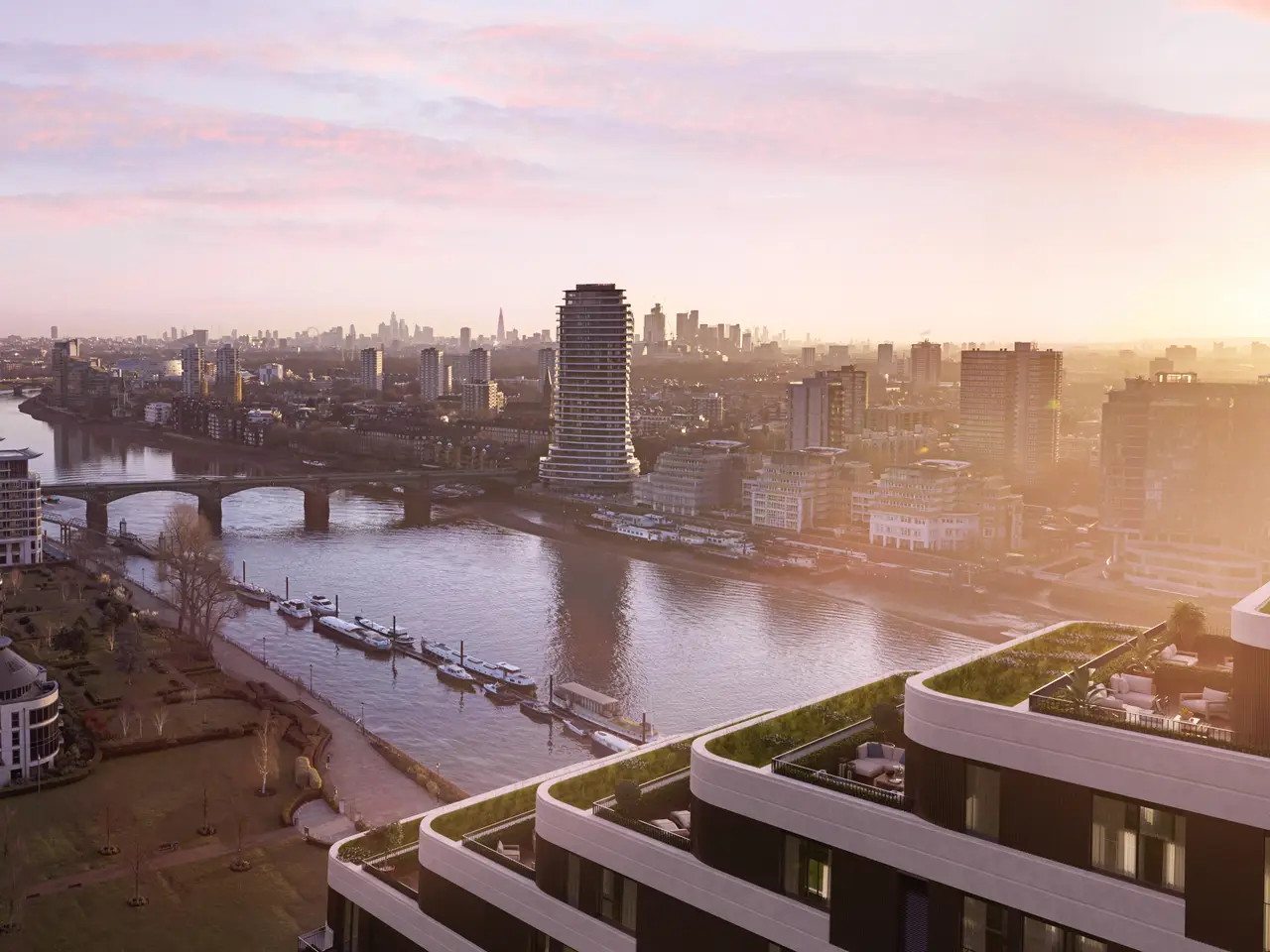 Chelsea Riverview is an exclusive boutique collection of stunning apartments located on London’s prestigious riverfront with sweeping views over the Thames and Imperial Park. With a limited selection of apartments now remaining, Chelsea Riverview offers an increasingly rare Riverside haven, close to the extremely desirable hotspots of Chelsea and Fulham and an unrivalled way of life. Located in the heart of Zone 2, Chelsea Riverview is also a close walk to Imperial Wharf station bringing easy access across central London and beyond. A place to belong and live well, Chelsea Riverview offers its residents a superb collection of amenities and services. The internal residents Chelsea River Club has been designed to ensure residents’ every need and expectation is met, from work life to wellness to relaxation, it has everything you could desire, from a private cinema to a yoga and workout studio as well as a residents’ lounge. The Club even has a groom room for your four-legged friends. In the meantime the residents concierge is in place to help you book a meeting room or chat knowingly about the area, as well as let you know when parcels arrive at the secure parcel room. At Chelsea Riverview you will always feel looked after. Stepping outside the front doors of the development will give every resident the opportunity to pause and and reflect with a walk along the river, take a moment of mindfulness in one of the luscious parks or indulge in one of the City’s cultural hotspots. Chelsea Riverview is more than a place to live; this is a way of life. *Images are CGI or of the show apartment and are indicative only.