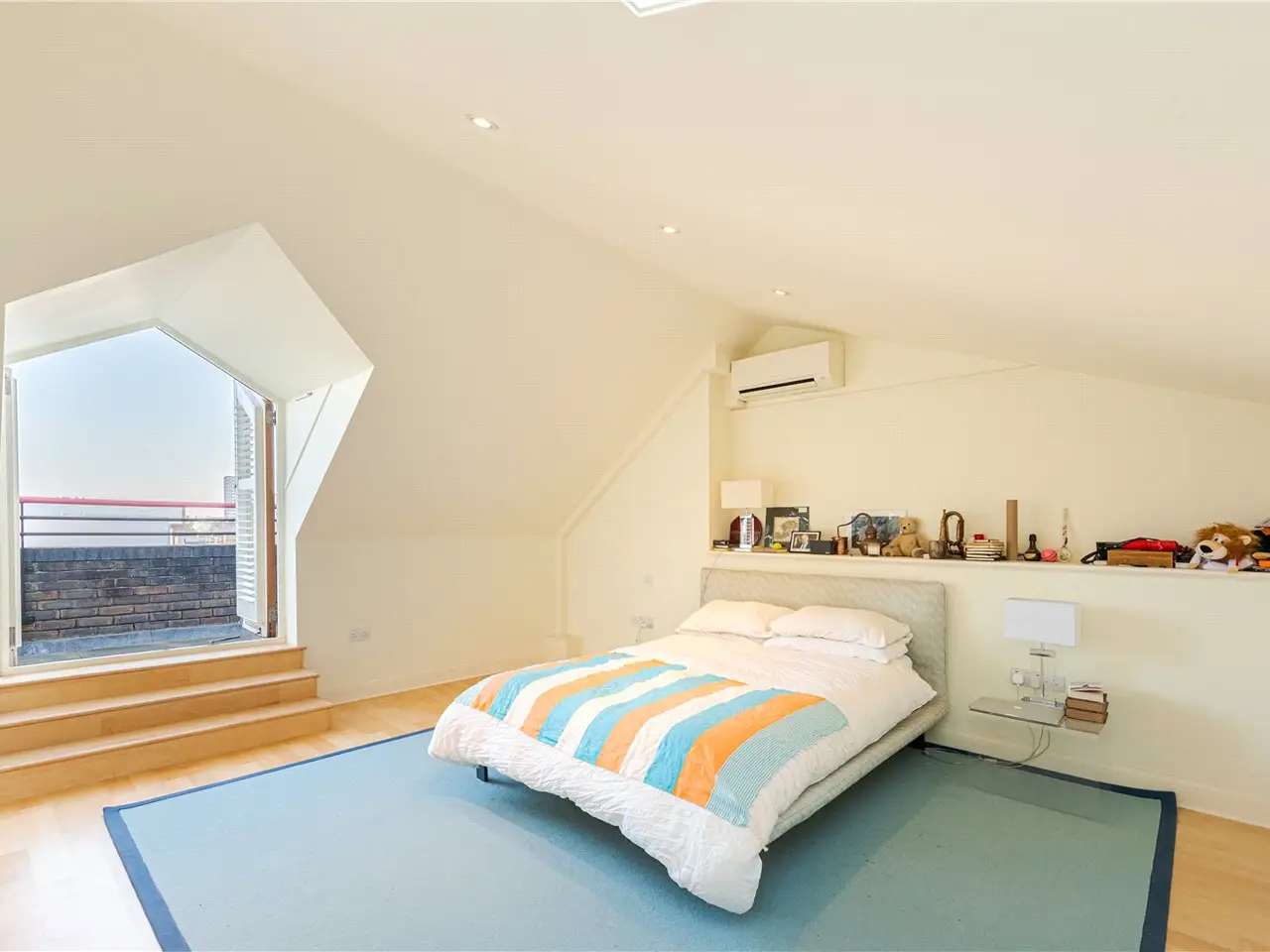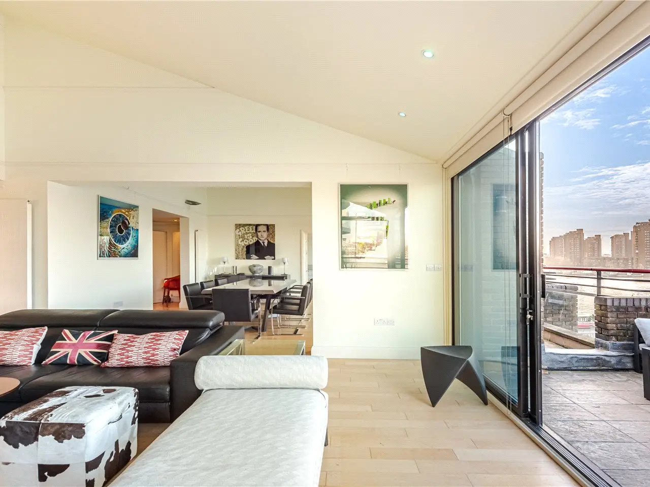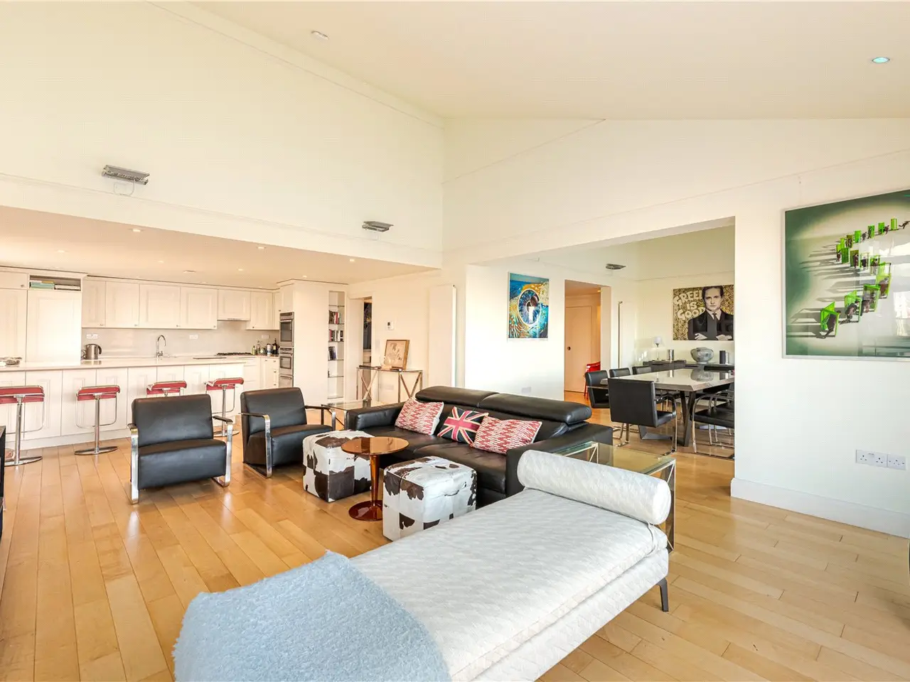 Exceptional 3-Bedroom Duplex with Panoramic River Views and Parking for Three Cars A rare opportunity to acquire an impressively proportioned, river-facing duplex apartment of approximately 2,450 sq ft, offering breathtaking views of both Albert and Battersea Bridges. Occupying the fourth and fifth floors of a boutique riverside development (with lift), this expansive three-bedroom home offers outstanding living and entertaining space with a loft style high ceiling. The main reception level features an open-plan kitchen, dining and living area, flooded with natural light and framed by floor-to-ceiling glass. Three sets of doors open directly onto a generous private terrace with sweeping views across the Thames. The principal suite includes ample built-in storage and a generous en-suite bathroom. Two further large double bedrooms also offer fitted wardrobes and are served by a stylish shower room. Also on the upper level is a study area with access to the balcony that runs the length of the flat and is also accessed via both bedrooms. A separate utility room and WC add convenience, while the property benefits from a day porter and secure parking for up to three vehicles — an exceptional asset in this area. Direct access to the Thames Path places Chelsea, Battersea Park, and both Albert and Battersea Bridges within easy reach. Excellent transport links include buses to Sloane Square, Central London, and Clapham Junction. The boutiques and cafés of Parkgate Road, including Bayley & Sage, are moments away, with King’s Road and Battersea Power Station also easily accessible. Council Tax Band H £1,980 per annum.