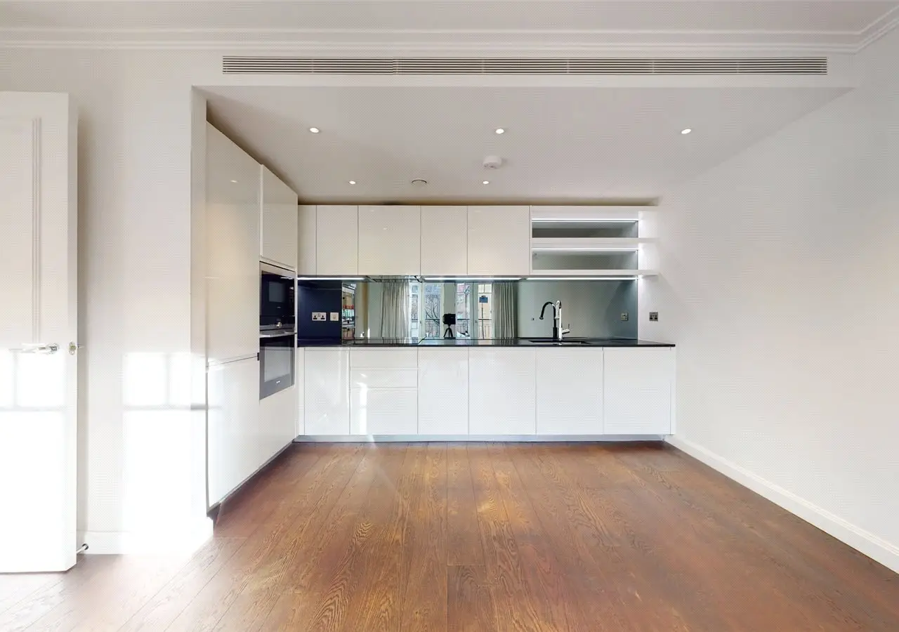 Fantastic two bedroom, two bathroom apartment situated on the 1st floor of a dual-aspect style building. Benefitting from 24/7 concierge, underground parking, underfloor heating and communal gardens. Comprising two double bedrooms, one with en suite bathroom and fitted wardrobes, an additional bathroom, open plan kitchen/ reception room leading to a private balcony. This apartment is within walking distance from Parsons Green Station and the River Thames. Service charge: £6,362 per annum; No ground rent; Lease: over 990 years. • Two bedrooms • Two bathrooms (one en suite) • Private balcony • 24/7 concierge • Underground parking • Communal gardens • Underfloor heating • Built-in storage