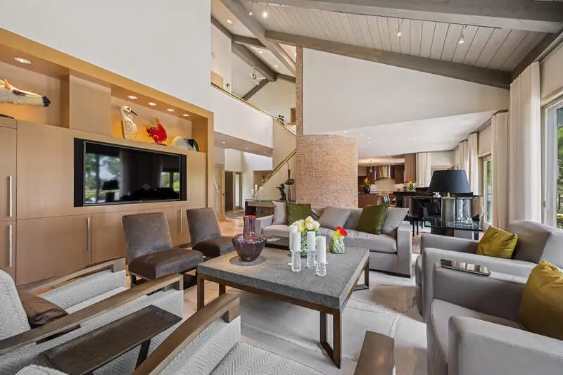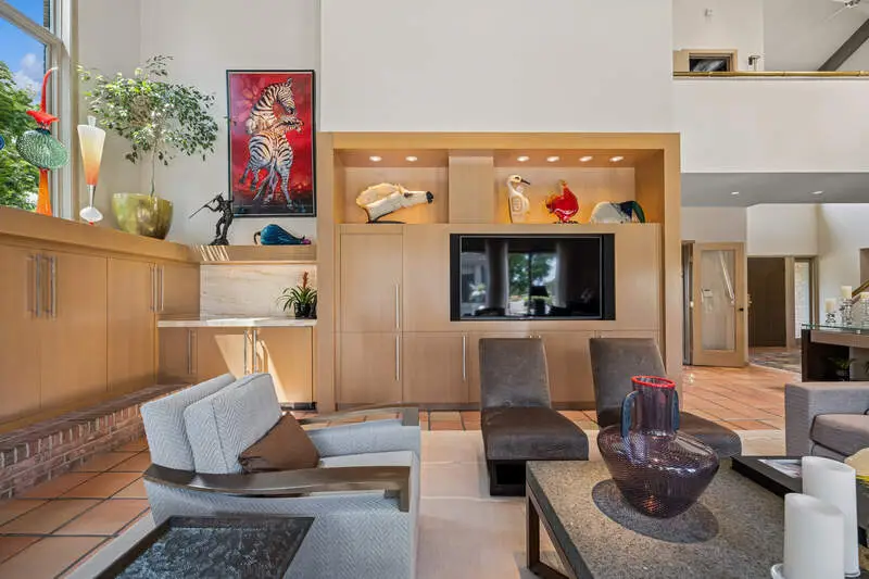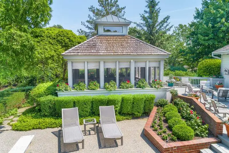 Prepare to be amazed by this extraordinary custom-built home, perfectly positioned to capture breathtaking golf course and pond views in coveted Country Club Estates. Reimagined with nearly $1M in renovations since 2020, this stunning residence offers over 6,300 sq ft of refined living space and an unparalleled outdoor oasis designed for resort-style living. A private backyard retreat awaits with a sparkling inground pool, expansive deck, and screened gazebo-perfect for al fresco dining or quiet evenings outdoors. Inside, the home impresses with a comfortable, contemporary flow and soaring two-story entry anchored by a dramatic curved brick accent wall spanning all three levels. The showstopping great room features vaulted ceilings, custom built-ins, a floor-to-ceiling gas fireplace, and sliders that open to the pool and deck. The adjacent chef's kitchen is a dream, boasting custom cabinetry, quartzite counters, an oversized island, top-tier appliances, and a sunny breakfast area with additional access to the rear deck. A large formal dining room sets the stage for unforgettable gatherings, while the private office provides a quiet space to work from home. Ideal for multi-generational living, the first-floor guest suite includes a full ensuite bath. A spacious laundry room with custom cabinetry, access to the pool area, and a three-car heated garage with epoxy flooring add function and convenience. Upstairs, the luxurious primary suite is a true sanctuary with panoramic views, a cozy sitting area with curved brick detail, dual walk-in closets, a private balcony, and a spa-like bath with whirlpool tub, separate shower, and his & her vanities. Three additional bedrooms include one ensuite and a shared Jack & Jill bath. A walk-up attic offers easy access for seasonal storage. The finished lower level is bursting with personality, offering a vibrant retro vibe with recreation, game, and exercise rooms, a custom dining booth, wet bar with seating for six, a dedicated craft room, and generous storage space. Professionally designed landscaping, beautiful terracotta flooring, circular paver driveway, and countless high-end details elevate this home to a class of its own. Located in award-winning Stevenson High School district and just minutes to charming downtown Long Grove, shopping, dining, and expressways for a quick trip to the city, this is luxury redefined.