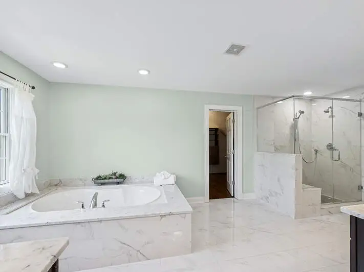 Luxurious primary suite with spa-inspired bathroom