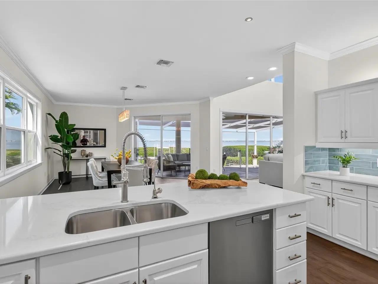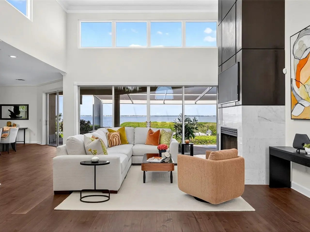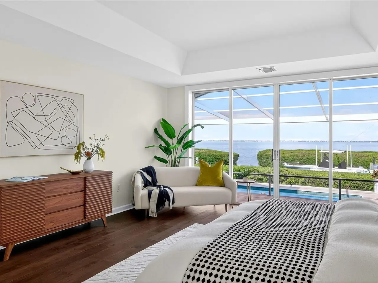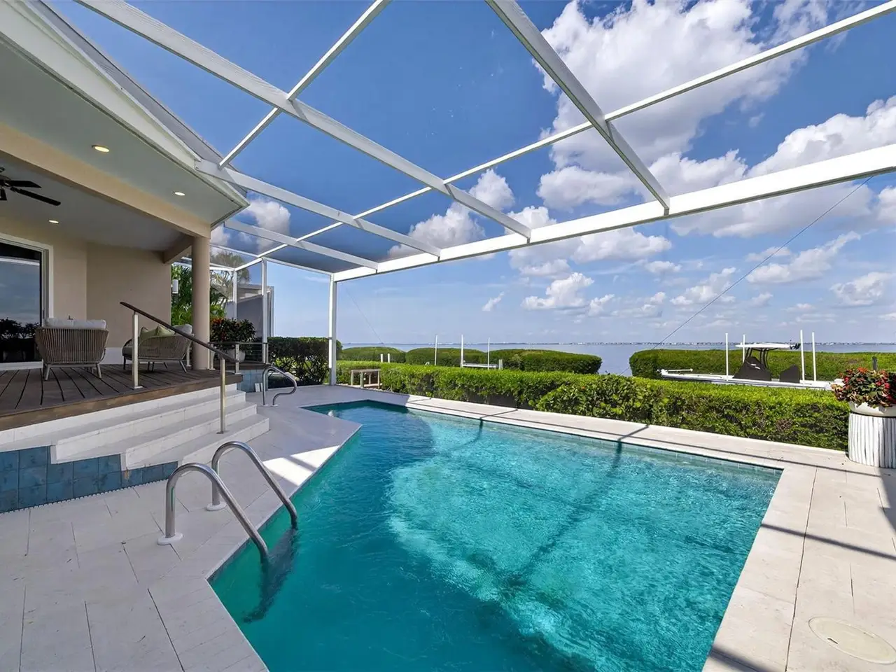A Rare Longboat Key Bayfront Opportunity. Discover an exceptional opportunity to live behind the gates of the Longboat Key Club in the highly coveted Corey's Landing neighborhood - one of the island's premier bayfront addresses. Rarely available, this detached single-family home offers direct Sarasota Bay views, a private boat dock and lift, pool, three bedrooms plus a study, a loft, and three-and-a-half baths. Set within an intimate, established community of just 61 single-family homes and villas, this residence welcomes you through double doors into a showplace of light, style, and space. Soaring transom windows, walls of sliding glass, and rich wood floors enhance the open great-room design - an ideal setting for entertaining around the beautiful fireplace. The updated kitchen connects seamlessly to the dining and living areas, featuring sleek white cabinetry, a striking tile backsplash, solid-surface countertops, stainless steel appliances, and a generous breakfast bar perfect for casual gatherings. The first-floor master suite is a private retreat with walls of glass, a cozy sitting area, custom built-ins, dual closets, and a luxurious remodeled bath with dual vanities, a large walk-in shower, and separate water closet. Also on the main level are two private guest suites, a study/den, and even a convenient outdoor dog space. Upstairs, a versatile loft offers space for a gym, library, or extra guest accommodations. Step outside to the expansive screened lanai - an inviting oasis for relaxing or entertaining by the pool while enjoying mesmerizing bay views and the glittering lights of downtown Sarasota. Two car attached garage provides plenty of storage space. Corey's Landing residents enjoy access to a community pool, spa, Har-Tru tennis courts, and the private Bay Isles Beach Club. Ideally located near shopping, dining, and the world-renowned St. Armands Circle, this home represents the ultimate Longboat Key lifestyle - elegant, relaxed, and effortlessly connected to both land and sea.
