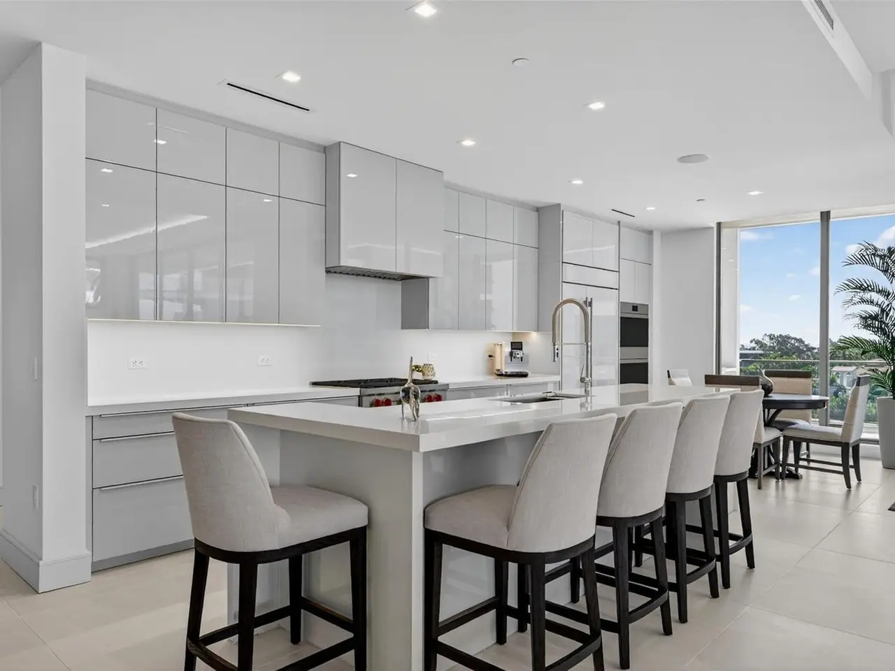 A rare opportunity to own the largest two-bedroom floor plan at the exclusive St. Regis Longboat Key. This premier corner residence offers sweeping views of the Gulf of Mexico, Sarasota Bay, resort grounds, and the tropical saltwater lagoon from its expansive wraparound terrace. Flooded with natural light, the spacious living room is ideal for entertaining, complete with a custom bar and beverage refrigerator. The chef’s kitchen is designed with Poggenpohl cabinetry, Wolf and Sub-Zero appliances—including double ovens, gas cooktop, refrigerator, microwave, and dishwasher. An outdoor Wolf gas grill extends the culinary experience to the terrace. The owner’s suite is a private retreat with floor-to-ceiling glass framing breathtaking Gulf views. A morning bar enhances the space, while a custom Closet Envy wardrobe offers exceptional storage. The spa-inspired bath features dual vanities, two private water closets, a walk-in shower, and a soaking tub with stone surround. The ensuite guest bedroom, also with custom built-ins, opens to the terrace for seamless indoor-outdoor living. Designer finishes throughout, curated by Marc Michaels Interior Design, deliver timeless sophistication. Residents of The St. Regis Longboat Key enjoy world-class amenities, including a private clubhouse with fitness center, resident-only pool and spa, and signature St. Regis Butler and Concierge services. Resort offerings extend to an oceanfront spa, beachfront cabanas, diverse dining venues, a lazy river, and a saltwater lagoon alive with tropical fish, stingrays, and resident tortoises. Set on 17 acres of pristine beachfront and just 3.5 miles from St. Armands Circle’s renowned shopping and dining, this residence is more than a home—it is an invitation to embrace the legendary St. Regis lifestyle, where elegance, comfort, and unparalleled service define every moment.