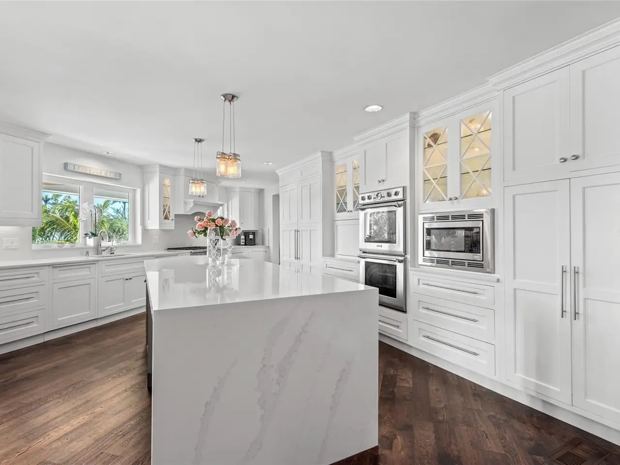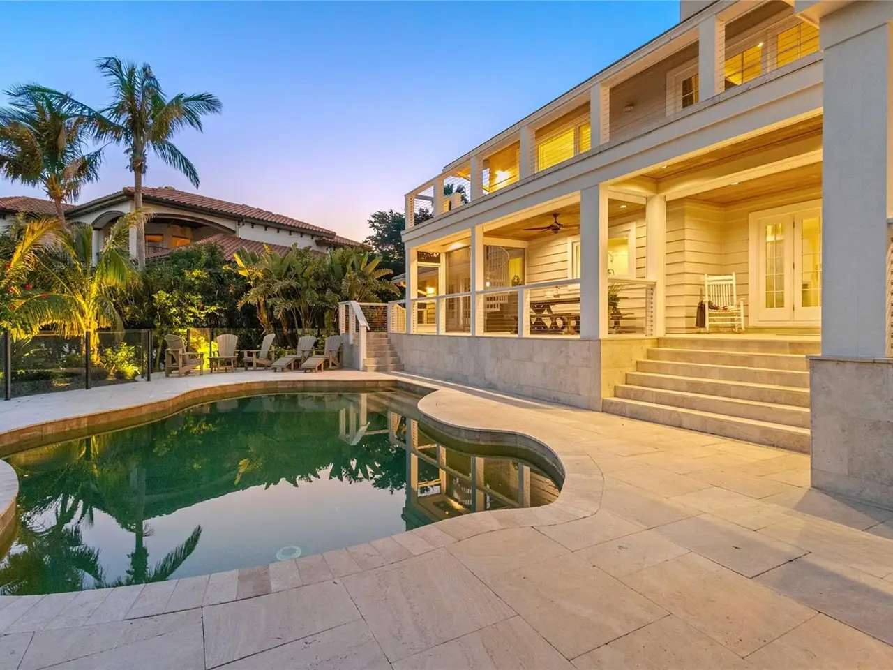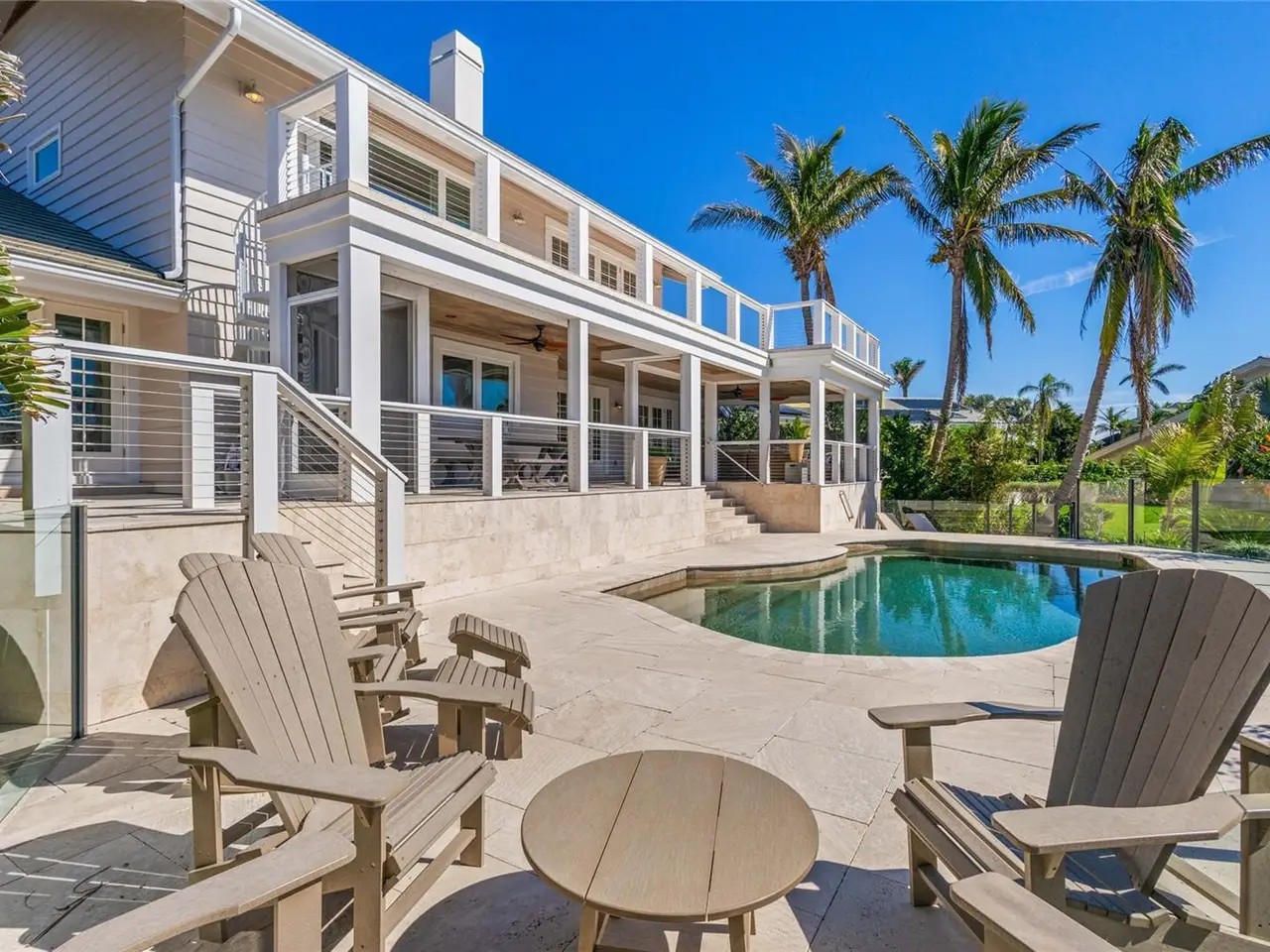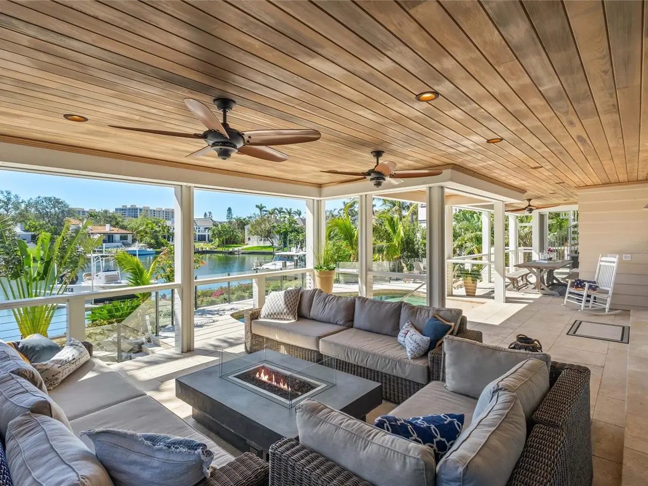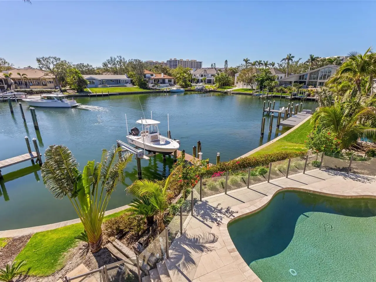 This exquisite two-story waterfront home located in the coveted Harbor section of Bay Isles has been meticulously renovated to embody modern elegance and luxurious coastal living. Surrounded by lush tropical landscaping, the home welcomes you through an elegant French door entrance into the grand foyer, where soaring ceilings, gleaming travertine flooring, and a striking wrought iron floating staircase with rich, dark wood steps set the tone for the refined elegance that unfolds throughout the home. The lower level boasts a bright and airy open space with hardwood floors throughout, creating a welcoming atmosphere that effortlessly combines sophistication with the timeless beauty of natural materials. The spacious family room is anchored by a stunning fireplace with decorative columns and an elegant mantel, complemented by French doors leading to the expansive waterfront lanai, reinforcing the home's seamless connection to its stunning natural surroundings. A culinary enthusiast's dream, the generously sized kitchen features a large island with a waterfall granite countertop, custom cabinetry, ample storage space, and high-end stainless steel appliances, including a six-burner gas range and double ovens. Adjacent to the kitchen, the dining area and great room spaces flow seamlessly into each other. The great room is both grand and inviting, showcasing a dramatic wood-clad cathedral ceiling that adds warmth and character. A second stone fireplace enhances the ambiance, while three sets of French doors that open onto the lanai offer an effortless transition between indoor and outdoor living. Also on this level are two generous guest suites, each with a full bath, one with direct lanai access, and a den with full bath. Upstairs, the primary suite is a true retreat. Floor-to-ceiling windows illuminate the space, and French doors open to a spacious private balcony, offering captivating water views that create a peaceful escape. A cozy fireplace adds to the intimate atmosphere, while the spa-inspired en-suite bath indulges with marble flooring, soaking tub, dual vanities, frameless glass walk-in shower, and water closet, all overlooking the serene waterway. The outdoor living space is equally spectacular, designed for both relaxation and entertaining. The expansive lanai features multiple covered areas with a rich wood-clad ceiling and retractable screens, a sun-drenched open-air section, and a stunning saltwater pool with travertine decking framed by verdant tropical landscaping. Just beyond the pool, a private dock with a boat lift sits on a deep-water basin and wide canal with no bridges to Sarasota Bay, offering quick and direct access for boating enthusiasts. Bay Isles Beach Club membership is included. This extraordinary home seamlessly blends elegance, comfort, and the unparalleled beauty of waterfront living, creating a sanctuary that is as functional as it is breathtaking.