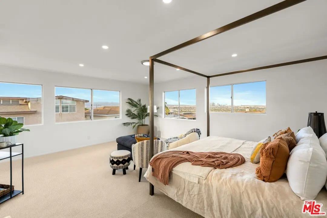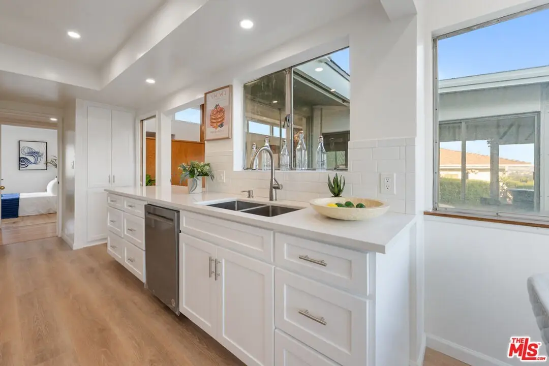 Welcome to this striking Mid-Century Modern residence, thoughtfully updated to blend timeless architecture with today's modern comforts. Perched in a cul-de-sac in the sought-after Baldwin Hills Estates neighborhood, this home showcases expansive use of glass that flood the interior with natural light while framing captivating views of the city and surrounding hillsides. The open-concept kitchen is a true showpiece, featuring brand-new stainless steel appliances, custom solid wood Shaker-style cabinetry, quartz countertops, stainless farm sink, and warm plank flooring. A cozy breakfast area with scenic outlooks offers the perfect start to your day. Flowing seamlessly from the kitchen, the family room boasts soaring vaulted ceilings and a dramatic fireplace, creating an inviting space for both casual living and entertaining. Original refinished hardwood floors highlight the home's character, while the spacious primary suite has been refreshed with designer Berber carpeting, a generous walk-in closet, and sweeping city light views that stretch all the way to Downtown Los Angeles. Two additional bedrooms provide comfort and flexibility, ideal for family, guests, or a home office. Functionality is enhanced with a dedicated laundry room/service porch, two-car attached garage, LED lighting, and abundant storage throughout. Outdoors, the property embraces its Mid-Century spirit with clean lines, natural light, and a sense of indoor-outdoor flow. Adding to its appeal, the home is located just minutes from Kenneth Hahn State Recreation Area and the scenic Baldwin Hills Scenic Overlookperfect for hiking, jogging, or simply enjoying the outdoors. With convenient access to Culver City, the Westside, and DTLA, this property combines style, comfort, and location in one remarkable package. Discover the perfect balance of classic design and modern living!