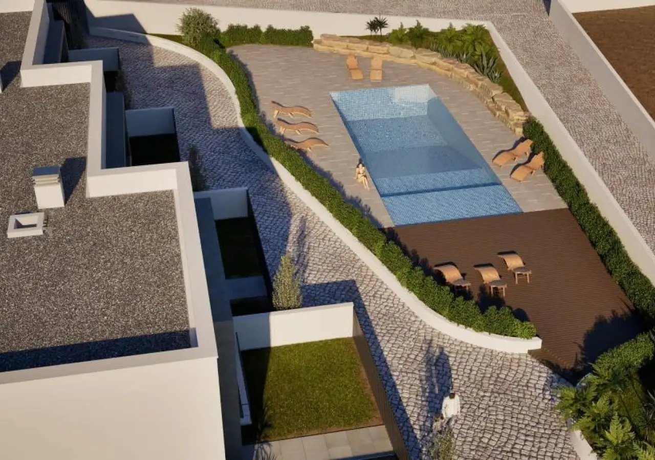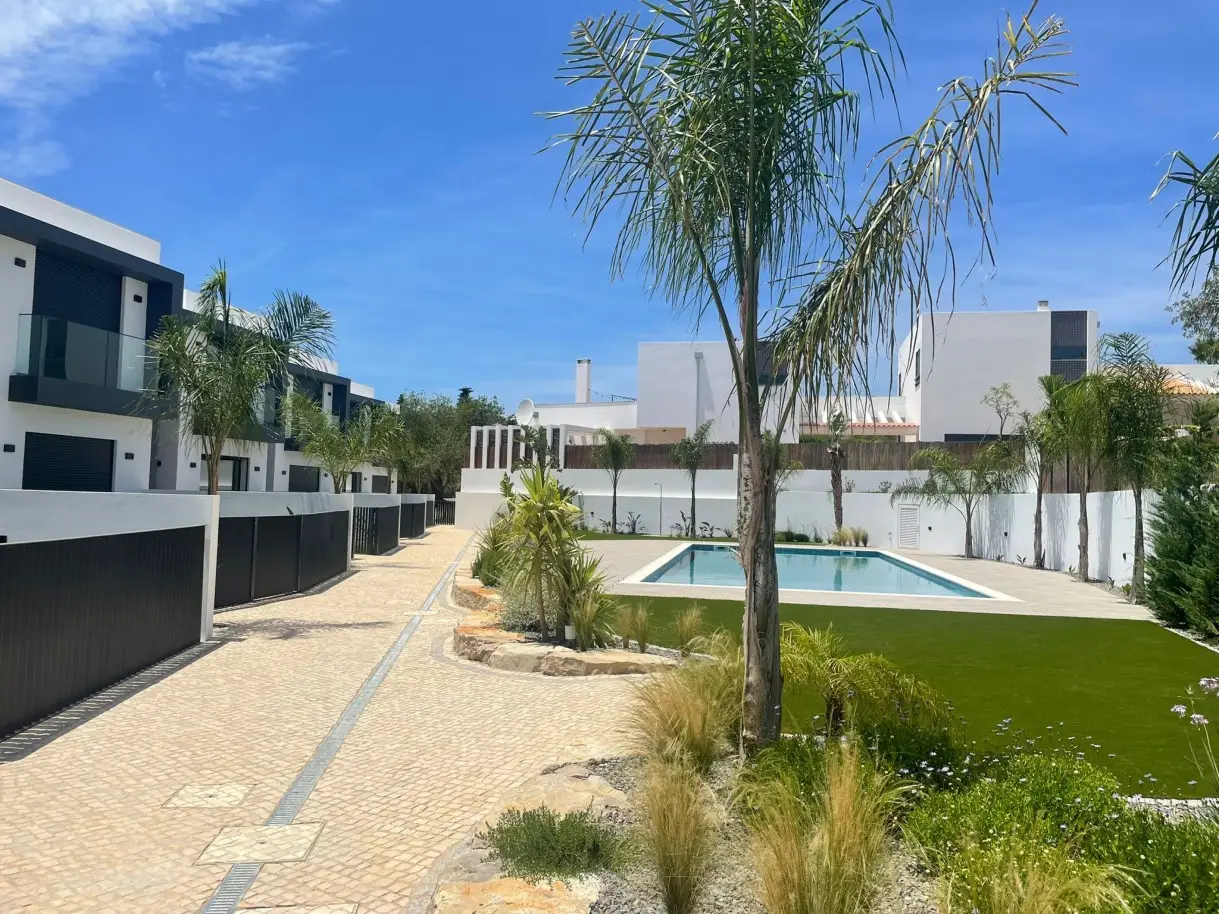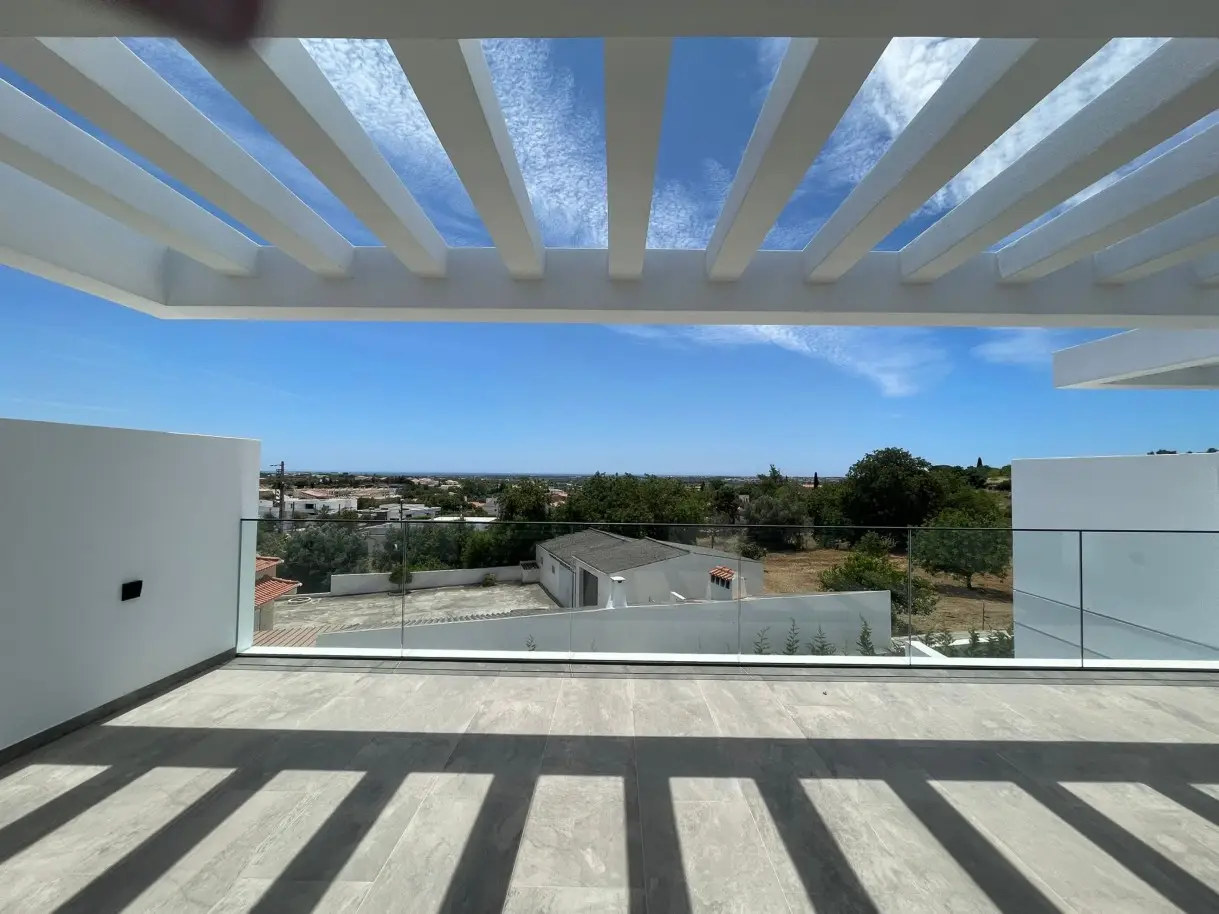 Modern 4-bedroom villa with panoramic sea views, garden and pool, for sale in Boliqueime, Algarve. Part of a sequence of six similar villas spread over three floors, the first floor has a large open-plan living and dining room with a fully equipped kitchen with direct access to the outside. The second floor consists of four bedrooms, all of them en suite and with excellent areas. The lower floor of the property is dedicated to the basement, with plenty of space for both parking and storage. Outside, this villa has a garden, large leisure areas and a fantastic pool. In a great location in Boliqueime, close to all kinds of amenities and services and just 35 minutes from Faro International Airport. CHARACTERISTICS: Plot Area: 525 m2 | 5 648 sq ft Area: 462 m2 | 4 968 sq ft Useful area: 208 m2 | 2 242 sq ft Bedrooms: 4 Bathrooms: 5 Garage: 2 Energy efficiency: A FEATURES: New construction Four bedrooms Equipped kitchen Garden Swimming pool Garage