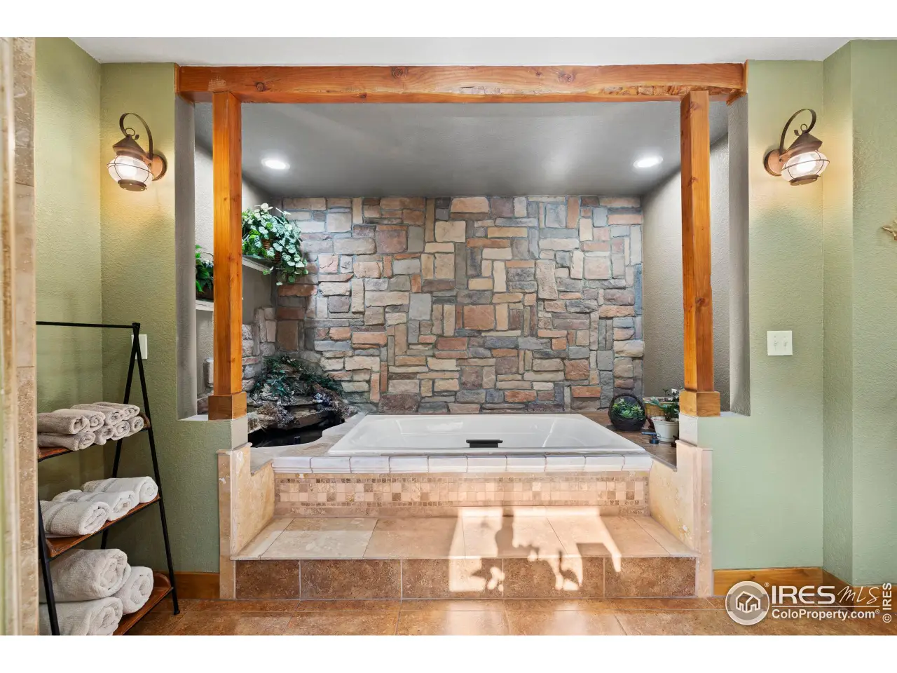 • Step-in hot tub with serene waterfall