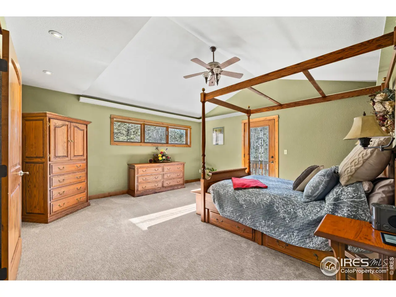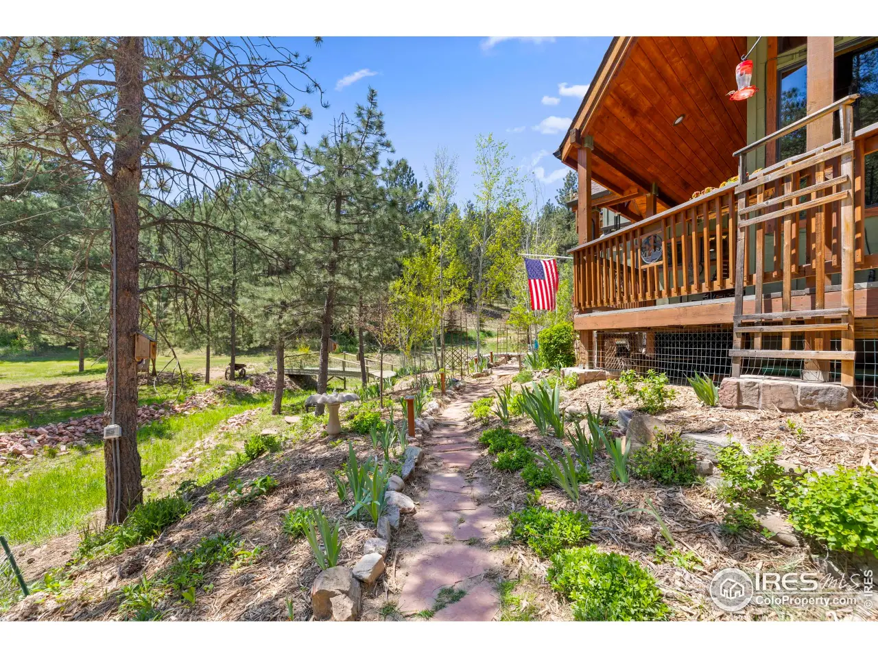 Remarkable custom-built residence nestled on almost 38 acres & within a 450-acre private wildlife conservation easement, offering an extraordinary blend of luxury & natural beauty. The heart of this home features a stunning 2-story great room with a wood stove, adorned with tongue and groove ceiling, creating an impressive architectural statement. The gourmet kitchen showcases high-end appliances & opens to the great room filled with abundant natural light streaming through large windows bringing the forest right into the living room. The spacious primary bedroom suite provides a private balcony retreat, complemented by a luxurious bathroom featuring a walk-in shower, 6-foot soaking tub & water feature. A versatile loft space off the primary bathroom serves perfectly as an office or additional living area. Outdoor living reaches new heights with a wraparound deck, complete with a step-in hot tub surrounded by a serene waterfall & koi pond. There is lovely outdoor space with a separate driveway that can easily accommodate a horse barn, while a charming bridge crosses a seasonal stream, adding to the property's enchanting atmosphere. Additional upgrades include: new boiler heating system, brand new carpet, some new interior paint, a 12 x 16 shed, custom closets, in-floor radiant heat, RV dump station, storage above the garage attic, & an almost 1200sf garage which could fit up to 4 vehicles & all your toys. The home's thoughtful design includes 3 bedrooms, 3 bathrooms, with the option to create a 4th bedroom in the upper floor loft/exercise room. Located near Ramsay-Shockey Open Space & just 20 minutes to the city of Loveland, this property presents possibilities for hosting weddings and events. With only a road association HOA, this sanctuary combines privacy with accessibility, offering a truly distinctive Colorado living experience. Property has been pre-inspected and is in top-notch shape! Recent hail storm in July 2025- Seller will replace roof prior to closing.