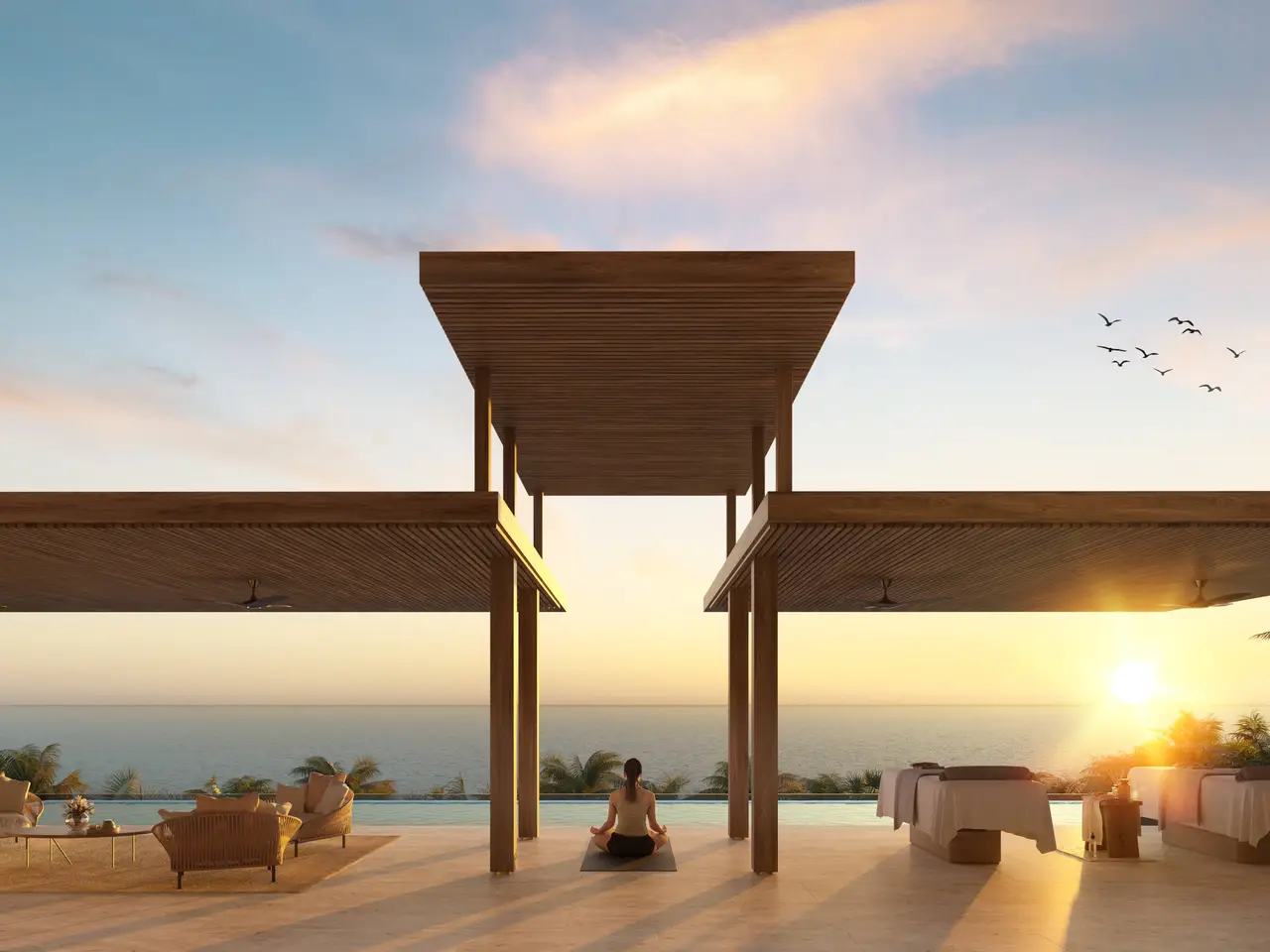Oceanfront terrace with stunning sunset views