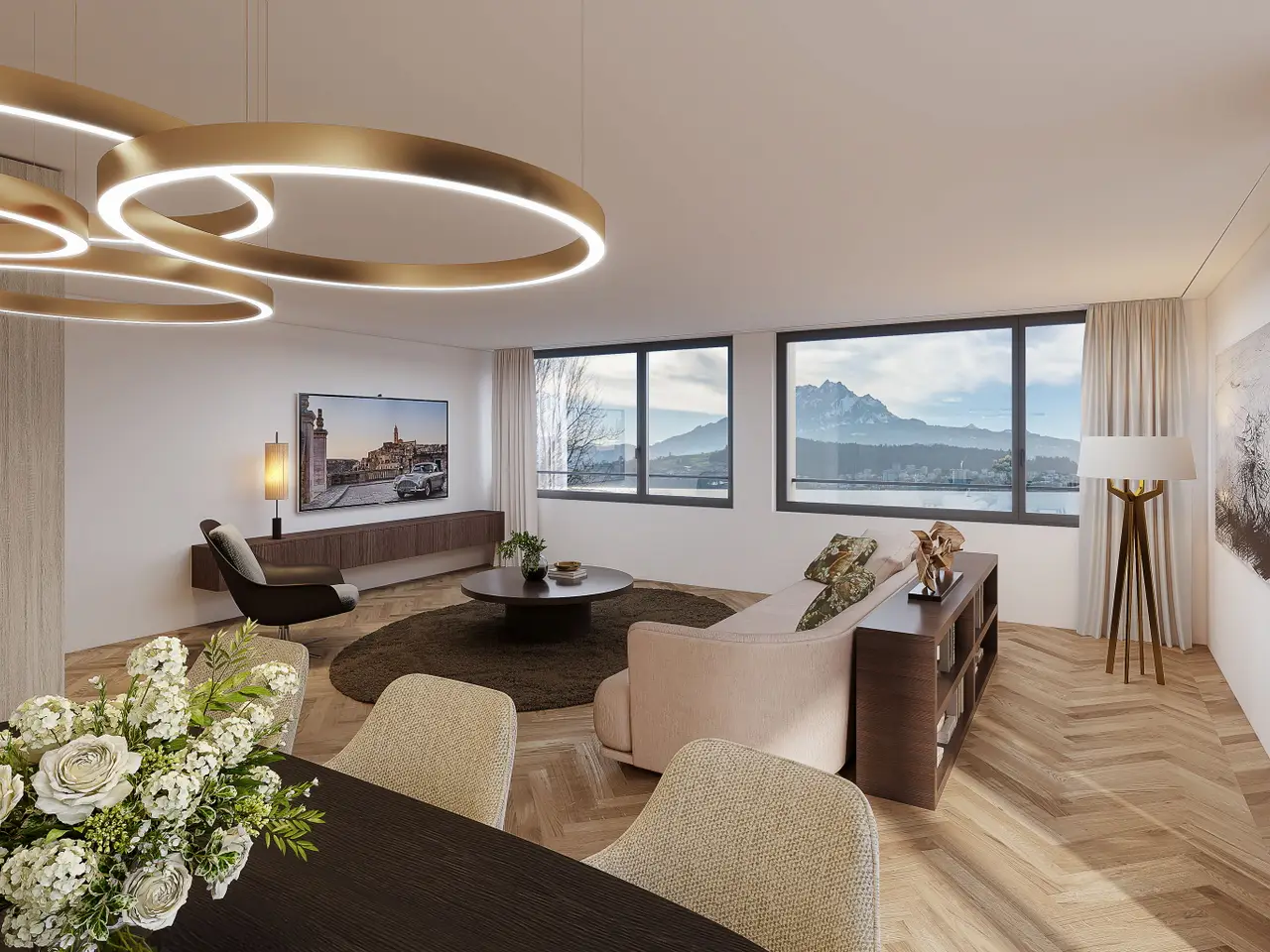 Experience luxury and nature in perfect harmony! This elegant garden flat in the exclusive new-build project HORIZON AM SEE offers you a unique living experience just a few metres from Lake Lucerne. Large window fronts let in plenty of light and create a seamless connection between the living space and the private terrace with garden. High-quality materials and state-of-the-art technology ensure maximum living comfort. New building project in a prime location in Lucerne Bathing spot on Lake Lucerne Elegant furnishings with high-quality materials and modern design Exclusive location in Lucerne, close to the city centre and recreational area The flat includes a parking space in the elegant underground car park at a purchase price of CHF 120,000.-