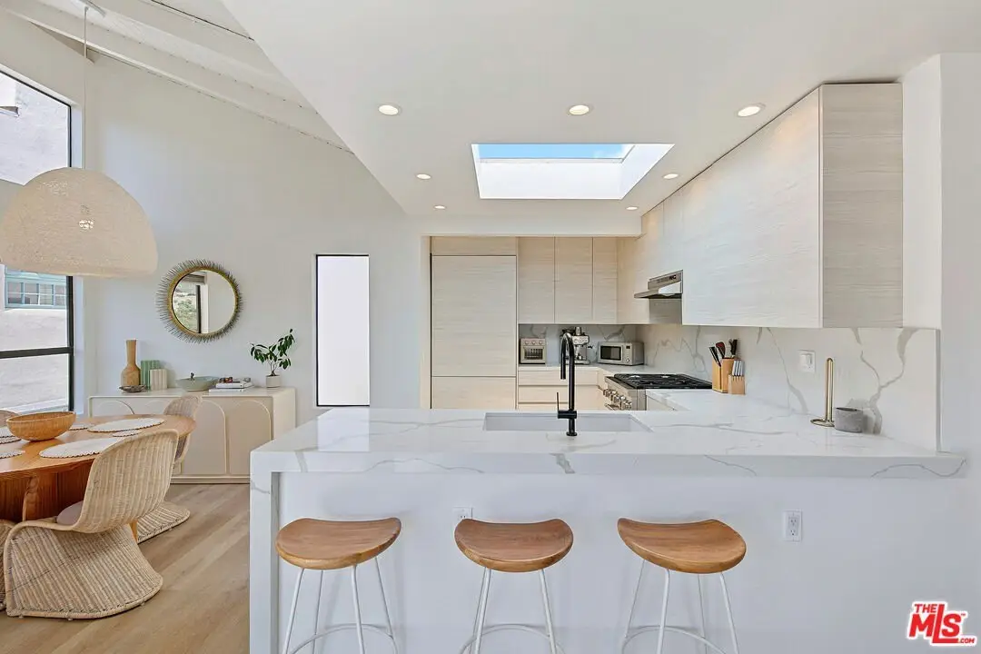 Incredible private Malibu retreat nestled in the hills of El Nido, just minutes from the beach.. This stylish home blends modern architecture with warmth and natural light. Vaulted ceilings, exposed beams, and expansive windows frame breathtaking ocean and mountain views. The open living area flows effortlessly from the cozy fireplace to a sunlit patio, perfect for lounging and entertaining. The chef's kitchen features new appliances, a center island and skylights that bring the outdoors in. The serene primary suite offers dual closets and a beautifully renovated en-suite bath. Two additional bedrooms provide flexibility for guests, a home office, or a nursery. A separate bonus room makes the perfect private office or creative space, and a detached studio serves as a perfect guest suite. Outside, enjoy peaceful garden spaces, a hammock strung between palms, and a private spa with hillside views. Located just minutes to Malibu's best beaches, hiking and dining. Offered for purchase or lease.