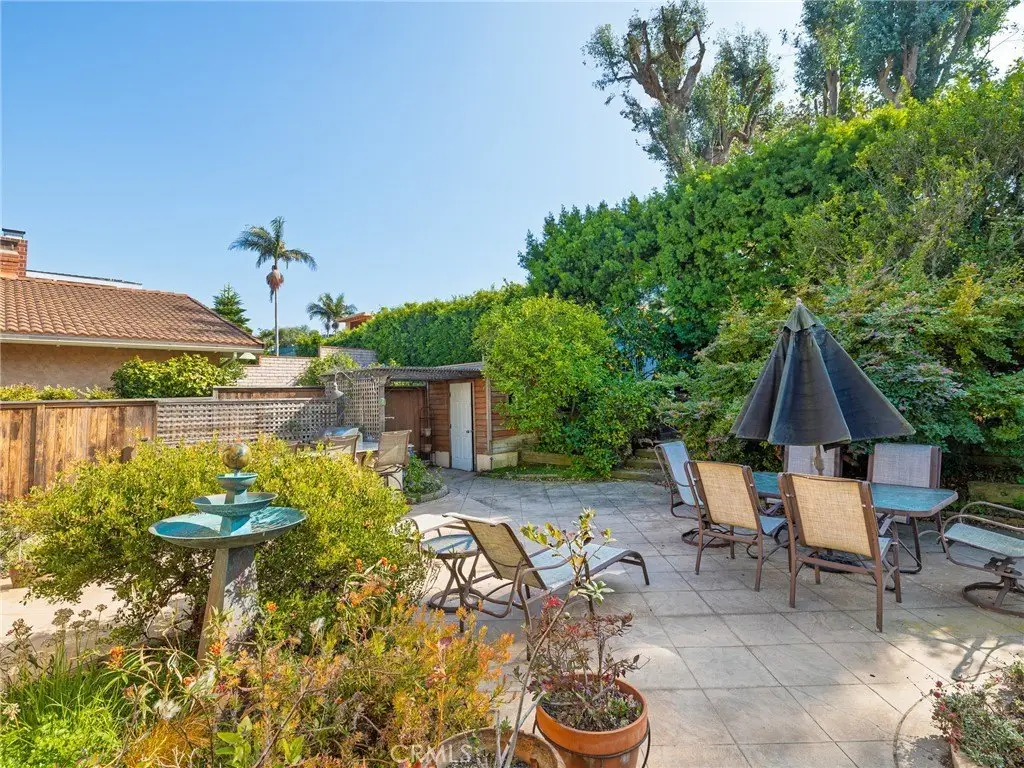 Spacious home with exceptional indoor-outdoor living! This beautifully maintained, ~2600 square foot residence offers an ideal blend of comfort and functionality throughout. The main level features an open concept kitchen with plenty of cabinet space, a large peninsula, five burner Thermador stove, double oven, and a dishwasher. The kitchen opens directly to the inviting living room which presents high ceilings, skylights, a fireplace, and a wet bar with a mini-fridge. Across the hallway from the kitchen, the large dining area connects directly to the family room which also features a fireplace, high ceilings, and built-in storage. The living and the family rooms both provide direct access to the sizeable and private backyard—an entertainer’s dream showcasing a built-in outdoor grill with a dedicated gas line and peninsula, a garden shed, hot tub, California native plants, and mature fruit trees (two lime, one lemon, and one tangerine). The dining area also opens to its own serene garden space on the west side of the home. Back inside, all bedrooms are situated on the main floor of the home. The large primary suite includes a balcony, two closets (including a walk-in closet), and an en-suite bathroom with dual vanities and a shower. The second and third bedrooms are generously sized and each have walk-in closets, while the fourth bedroom can similarly serve as a great bedroom/office. A full bathroom with dual vanities, a shower, and a tub is conveniently positioned between the other three bedrooms. Moreover, a convenient half bathroom sits just off the entry, perfect for guests. Downstairs features an oversized laundry room with access to an immense storage area under the home as well as a two-car garage with built-in storage. Additional highlights include central heat, recessed lighting, built-in cabinetry, and abundant storage throughout. Combining open spaces, an ideal layout, and lush outdoor amenities, this home offers versatile living in a peaceful and private setting.