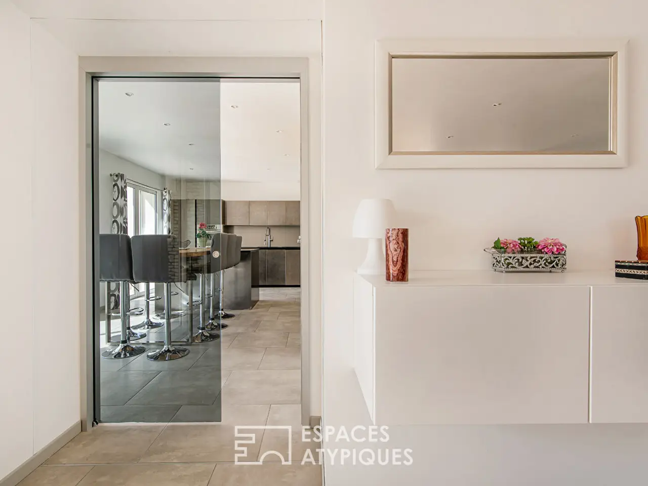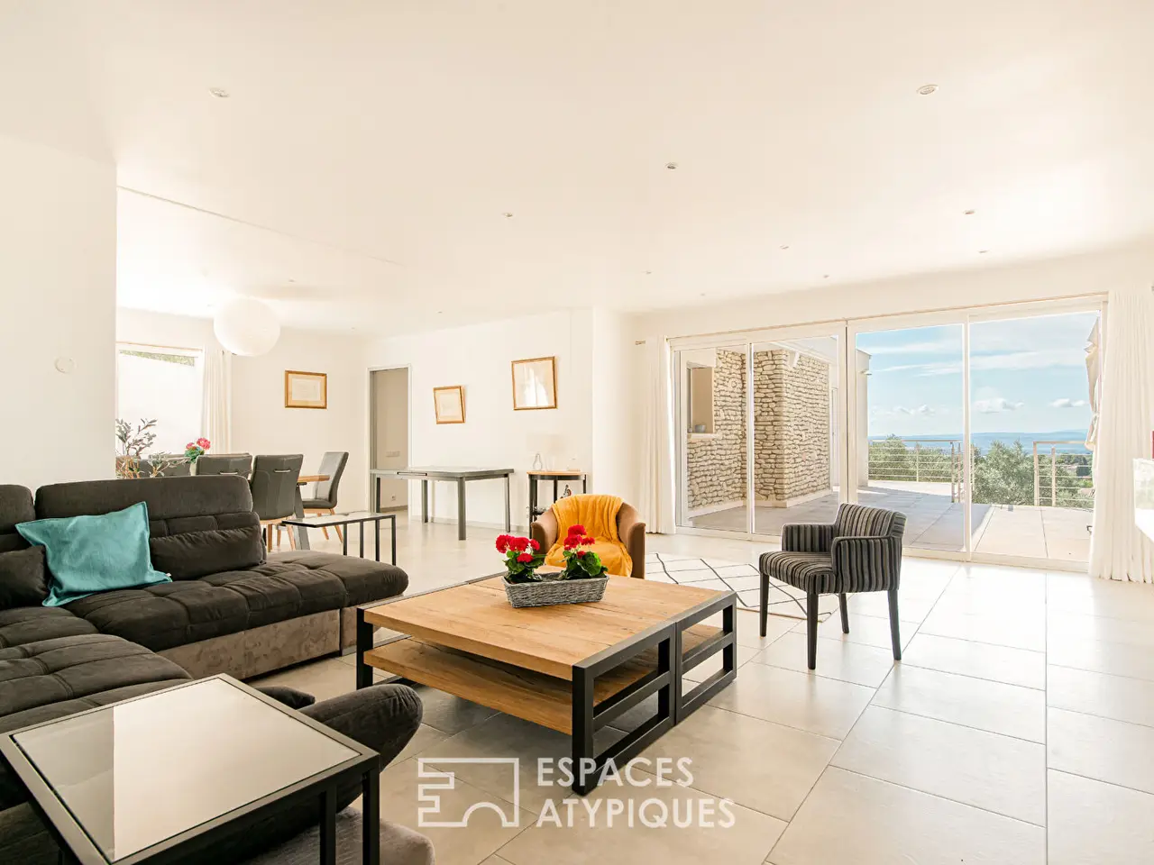 Perched on the enchanting heights of Manosque, this architect-designed villa, a true masterpiece of renovation, reveals itself as a work of art fashioned with exceptional materials. Here, the gaze is lost in a breathtaking panoramic view, embracing every nuance of the Provencal landscape. Of rare elegance, this residence extends over 400 sqm, including 260 sqm of living space bathed in light. On the ground floor, a vast living room opens onto a large refined terrace, an invitation to contemplation and serenity. The kitchen, both modern and adorned with high-end materials, deploys its 29 sqm of pure sophistication, with direct access to a spacious terrace, a true promontory on the surrounding nature. On this level, a large office or bedroom, a spacious 17 sqm bedroom, a very bright bathroom, an elegant 16 sqm dressing room, as well as a sumptuous master suite with adjoining bathroom, complete this haven of serenity. Each room, each door has been created with unparalleled finesse, combining timeless charm and impeccable quality. On the garden level, the villa reveals an intimate 21 sqm bedroom with adjoining bathroom, a vast 33 sqm laundry room, as well as generous outbuildings, offering a space conducive to all inspirations. The garden, a true haven of peace of 3,102 sqm, is a living painting where century-old olive trees and Mediterranean species blend in perfect harmony. The swimming pool, with a surface area of 52 sqm, invites you to escape, lulled by the sweet melody of the surrounding nature. This villa, a true temple of comfort, has sliding bay windows, geothermal heat pump heating, underfloor heating regulated room by room, and electric roller shutters. This property, a symphony of elegance and luxury, deserves a visit that will transport you to a world where every detail is an ode to the art of living. Additional information * 8 rooms * 4 bedrooms * Outdoor space : 3100 SQM * Property tax : 3 947