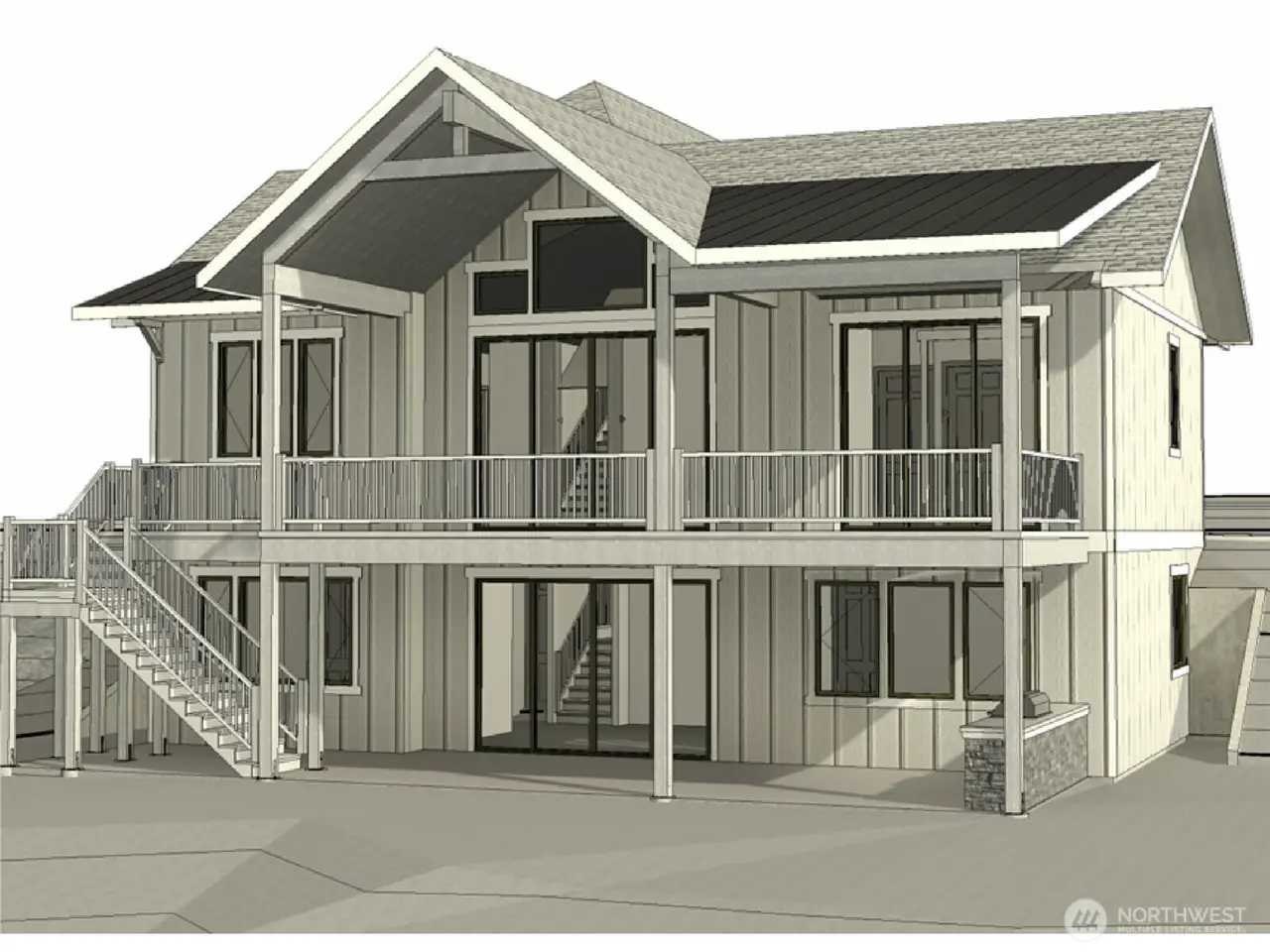 Lake-facing deck with newer construction