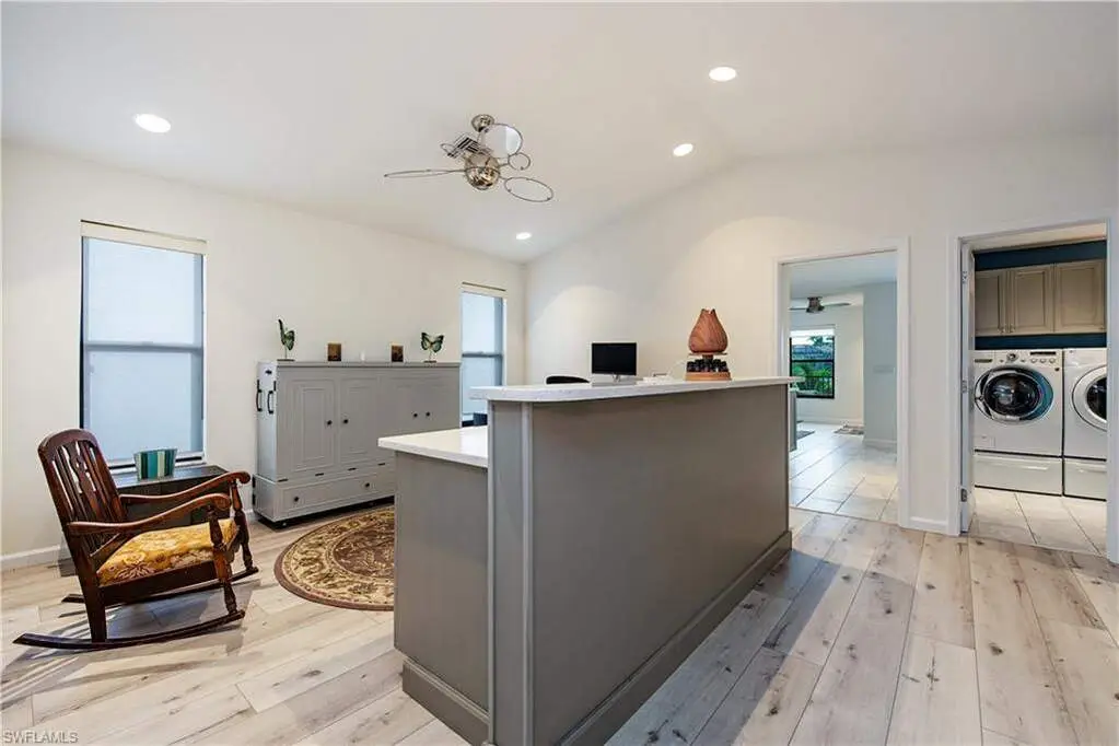 Welcome home to one of Marco Island's best-kept secrets - a sun-soaked, move-in-ready waterfront retreat offering the perfect blend of comfort, privacy, and island charm. This lovingly remodeled (2015) 2-bedroom + flex space, 3-bath home is ready just in time for seasonal living or year-round enjoyment. With its southern exposure, wide-water views at the convergence of canals, and dolphins and manatees as your daily neighbors, this home invites you to slow down and savor the natural beauty of coastal life. Tucked on a quiet street just 2 miles from the beach and walking distance to restaurants, shops, parks, and the seasonal weekly farmers market, the location offers a welcoming entry into a tight-knit, no-HOA community where friendliness is the local currency and every sunset feels like a private show. Inside, the home features a freshly painted interior (ceilings, walls, and trim) and a light-filled open-concept layout designed for effortless living and entertaining. The kitchen includes a breakfast bar that flows into the spacious great room, perfect for morning coffee or evening wine with friends. You'll find: A private guest suite with its own ensuite bath A flex space ideal for a home office or 3rd sleeping space A full pool bath/laundry room that's also connected to the owner's suite The primary bedroom includes a custom walk-in closet with a built-in island (8 full-size drawers + 4 smaller drawers), making dressers optional. The ensuite bath features a bidet and walk-in shower for spa-like ease. Outdoors, this home is a true oasis: Heated pool + spa with multi-color LED lighting controlled via aqualink, 3-piece in-pool Ledge Lounger furniture included, New picture window lanai screens + 15' x 30' covered space, Separate room off lanai for storing pool and fishing gear, 20' x 30' paved patio overlooking the water for dining, lounging, or stargazing, Private dock with 2 remote-control lifts: 14,000 lb boat lift 7,000 lb jet ski/kayak lift, 80-foot seawall, underwater lights, and your own artificial reef. The home is equipped with high-end upgrades to make life easy and secure: Whole-home generator (500-gallon propane tank, full at closing) Metal roof and Storm Smart screen for lanai protection Ring cameras front and back 2-car garage with app controlled garage door opener, epoxy floors, auto-lift storage, and adjustable shelving, Circular driveway for easy guest access Personal touches add charm: Mango and fig trees ready for harvest A rare staghorn fern, a living sculpture that thrives without soil Unique mailbox and turtle yard art that bring a bit of whimsy to your curb appeal. Whether you're seeking a full-time residence, seasonal retreat, or a luxury rental opportunity, this home is ready to welcome you - just in time for the coming season.